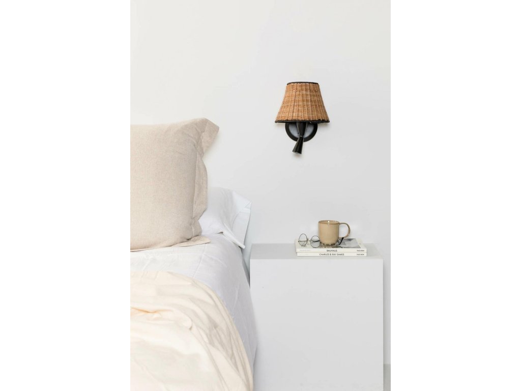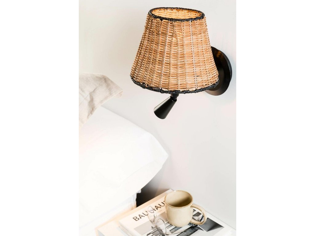 SUMBA čierna/ratan nástenná lampa s čítacou lampičkou - FARO