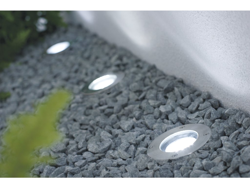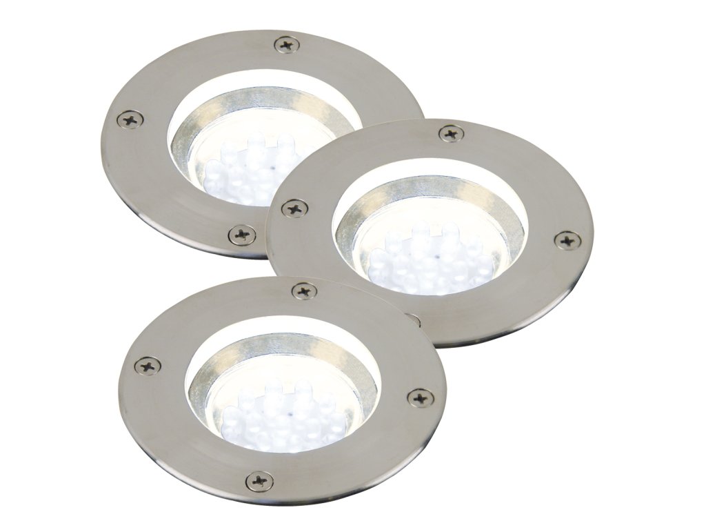 Originálna sada troch vonkajších zemných vstavaných svietidiel v nerezovom prevedení s nastaviteľným svetelným lúčom.Dodatočné parametre