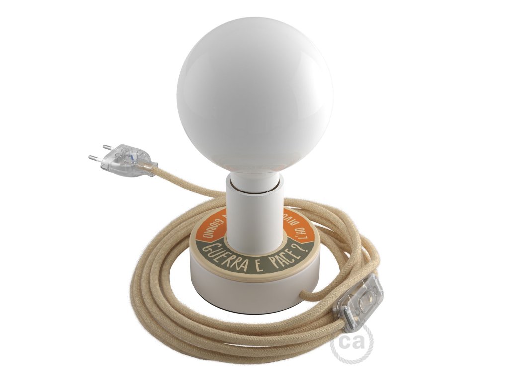 Každý disk MINI-UFO je obojstranný a ideálny pre tých, ktorí radi a často menia vzhľad svojho interiéru a bytových dekorácií. Pokiaľ vás omrzí heslo vášho disku MINI-UFO, jednoducho si môžete kúpiť ďalšie! Svietidlo Posaluce, s diskom MINI-UFO, je dodávané so zástrčkou, vypínačom a 2 metre jutového kábla. Môžete si ho kúpiť aj so žiarovkou: pre tento model sme pripravili mliečnu žiarovku G125 Globe Led. Pokiaľ vám táto žiarovka nevyhovuje, môžete si prejsť náš sortiment dizajnových LED žiaroviek a vybrať si tú, ktorá najlepšie vyhovuje vášmu štýlu.