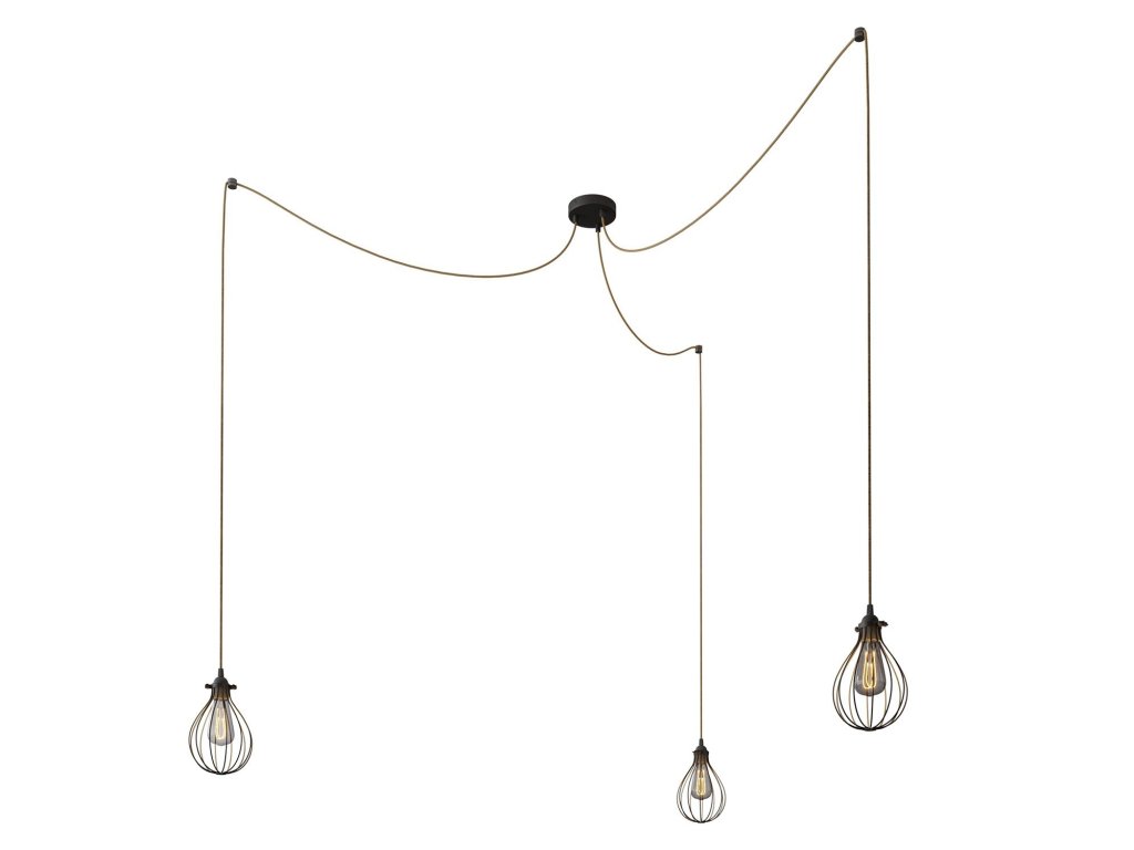 Svietidlo Spider s 3 závesnými svetlami, textilným káblom a klietkovými tienidlami v tvare kvapky