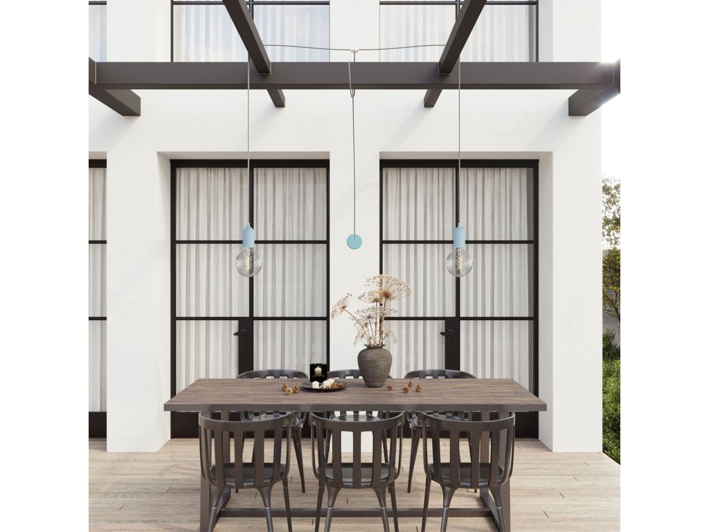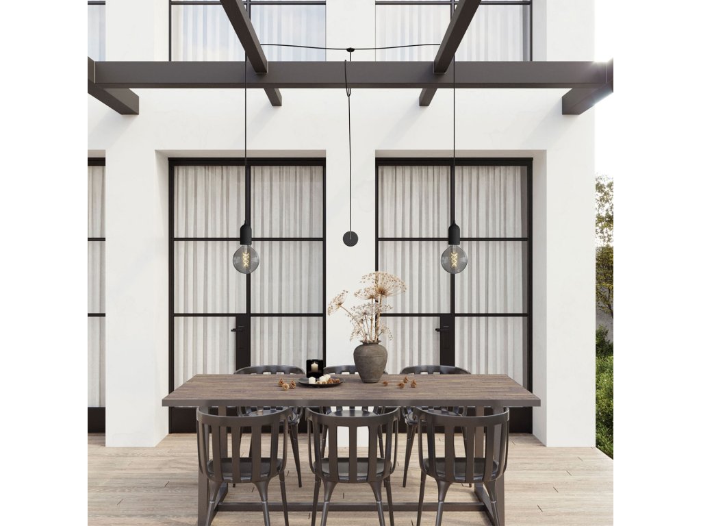 Hľadáte vonkajšie svietidlo s dvojitým vývodom svetla, ktoré môže byť praktické a zároveň príťažlivé a navyše vyrobené v Taliansku? Potom ste na správnom mieste. Jediná lampa, dostupná v rôznych povrchových úpravách, ktorá vám pomôže usporiadať skvelé večere bez nezhôd. Treba pozvať tetu Rosettu a strýka Saveria, ktorí spolu dvadsať rokov nehovorili, na večer na terase, kde sa pohodlne usadí na pohovke pri jednom stole. T-Snake s odkrytou žiarovkou bol skonštruovaný s baldachýnom, objímkou a spojovacou krabičkou zo systému EIVA, navrhnutým spoločnosťou Creative-Cables: komponenty so stupňom ochrany IP65 sú navrhnuté tak, aby boli odolné voči vode a dažďu, doplnené neoprénovým káblom s textilným poťahom, ideálne pre vonkajšie použitie. S dvoma postrannými (laterálnymi) závesmi pre úplne prispôsobiteľný vzhľad. A možno budú na konci večera obaja príbuzní opäť priateľmi!