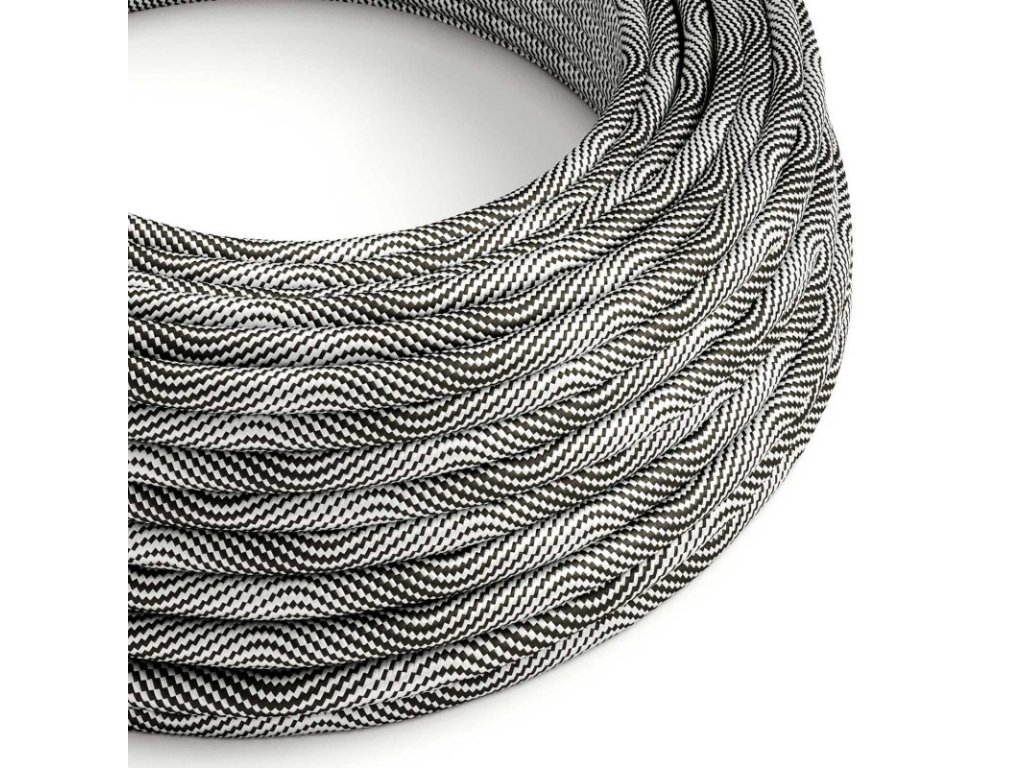 Textilný elektrický HD kábel so vzorom optical vertigo ERM64 - čierna a strieborná