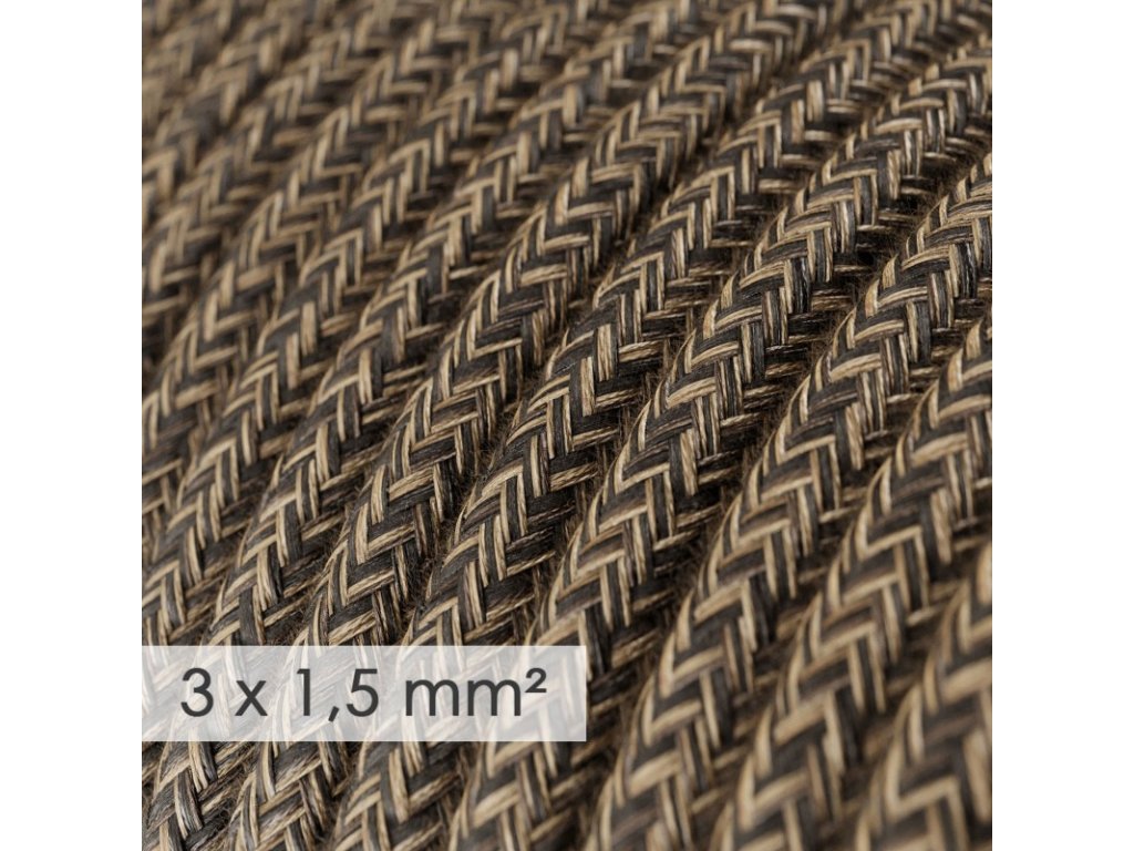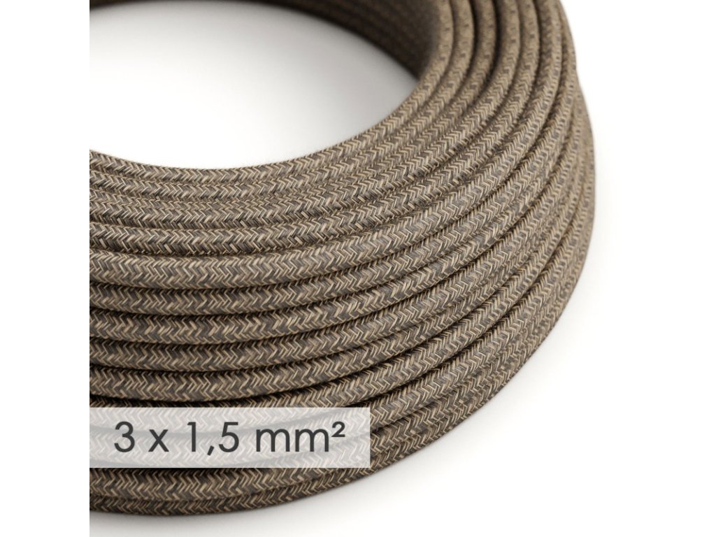 Textilný elektrický kábel 3x1,5 - ľan prírodnej hnedej farby RN04