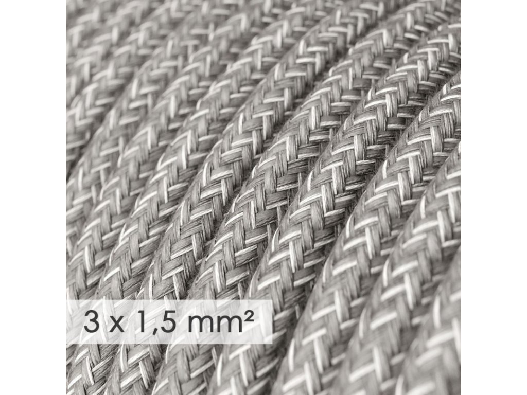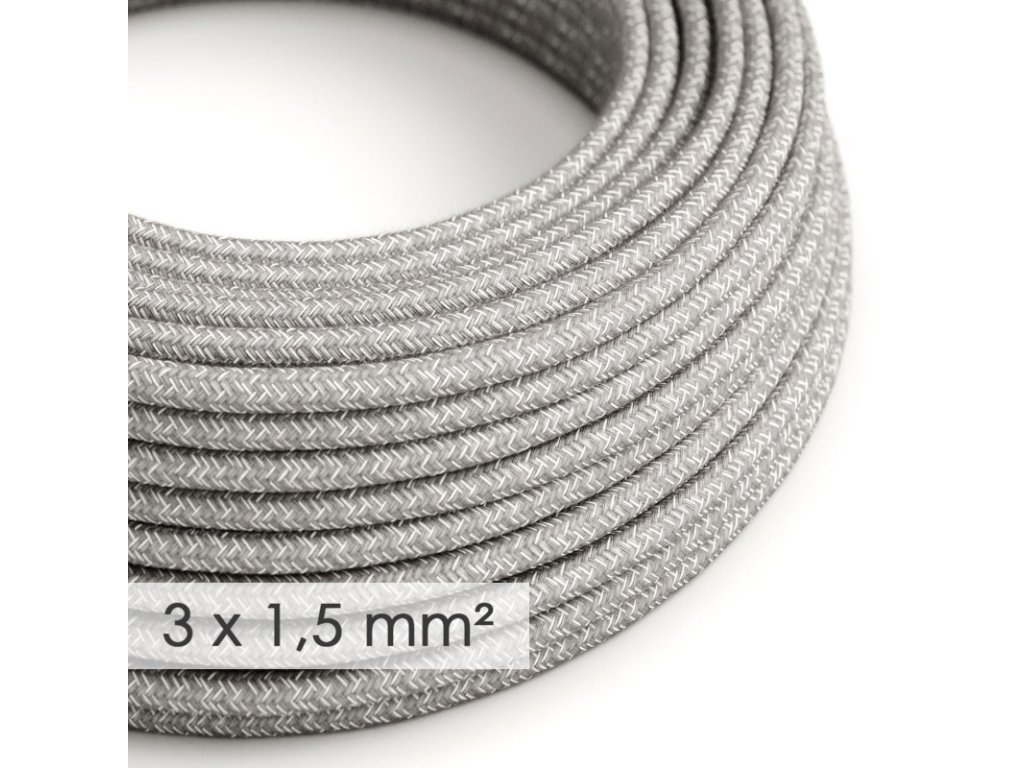 Potrebujete viac elektriny? Tento textilný elektrický kábel so širším priemerom 3x1,5 - ľan prírodnej šedej farby RN02, je ideálny pre vytvorenie vlastnej predlžovačky, pre rozvody elektrickej siete alebo jednoducho všade kde chcete priviesť elektrinu vašim elektrickým zariadeniam. Elektrický kábel má dvojakú izoláciu z ohybného PVC. Všetky káble Creative-Cables sú 100% vyrábané v Taliansku s IMQ-Har certifikátom. Upozornenie! Naše elektrické káble so širším priemerom 3x1,50 mm² nie sú hrúbkou kompatibilné s našimi stropnými rozetami a objímkami.