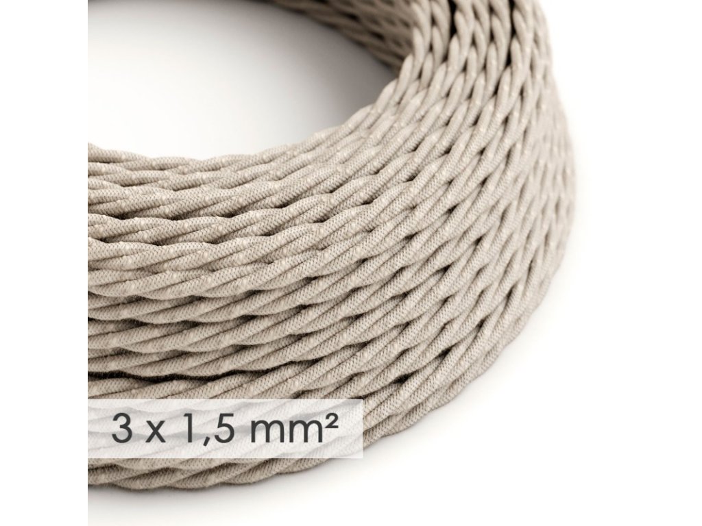 Textilný elektrický kábel 3x1,5 - špirálový - ľan, prírodná neutrálna farba TN01