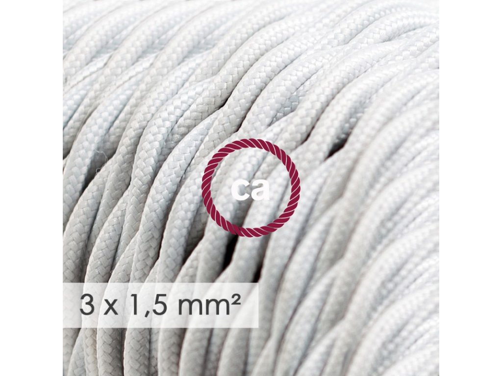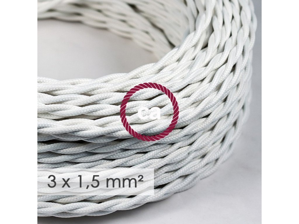 Potrebujete viac elektriny? Tento textilný elektrický kábel so širším priemerom 3x1,5 - umelý hodváb TM01 biely, je ideálny pre vytvorenie vlastnej predlžovačky, pre rozvody elektrickej siete alebo jednoducho všade kde chcete priviesť elektrinu vašim elektrickým zariadeniam. Elektrický kábel má dvojakú izoláciu z ohybného PVC. Všetky káble Creative-Cables sú 100% vyrábané v Taliansku s IMQ-Har certifikátom. Upozornenie! Naše elektrické káble so širším priemerom 3x1,50 mm² nie sú hrúbkou kompatibilné s našimi stropnými rozetami a objímkami.