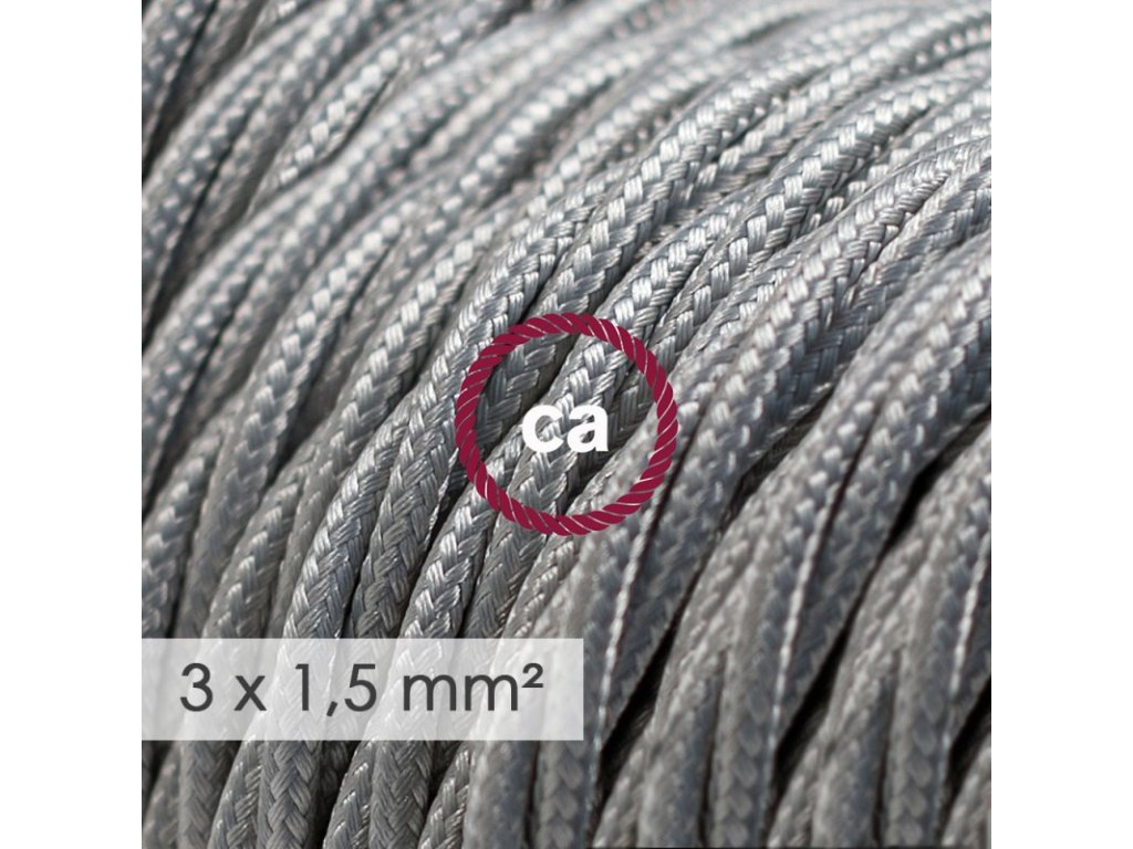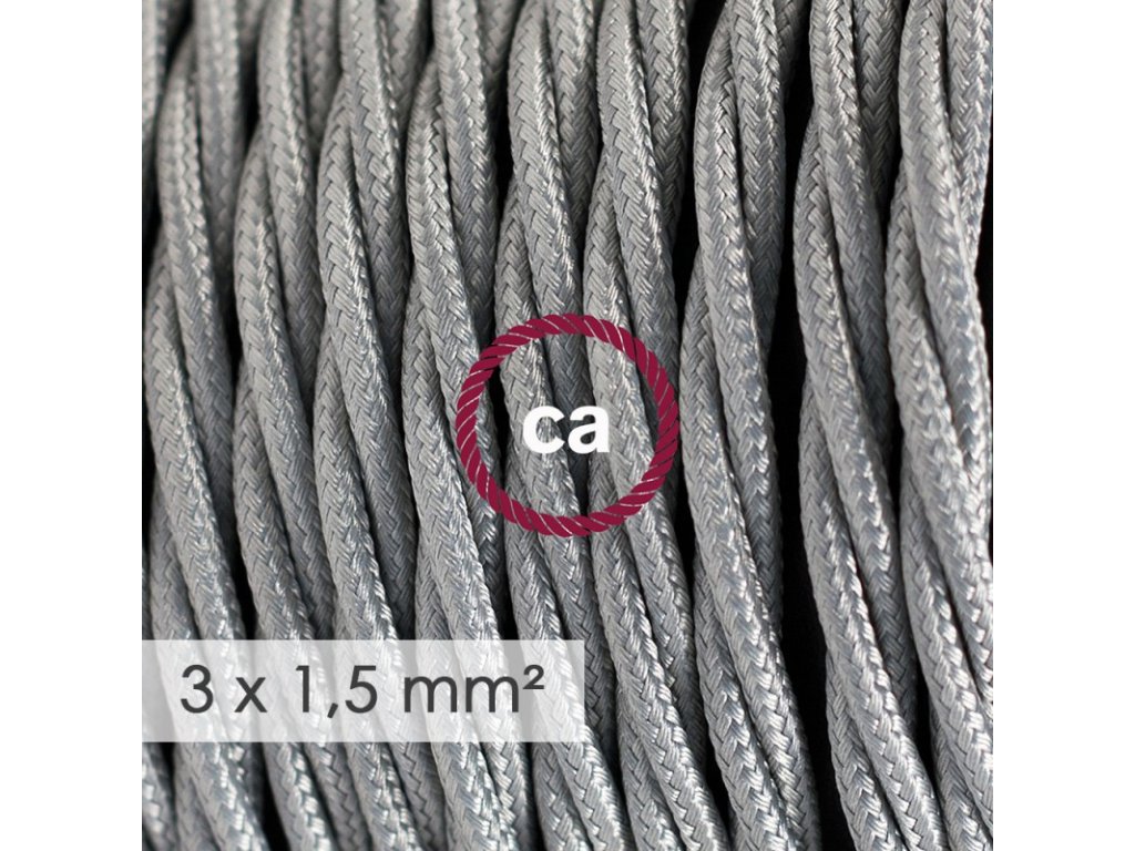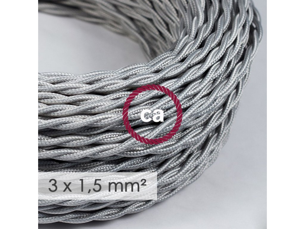 Potrebujete viac elektriny? Tento textilný elektrický kábel so širším priemerom 3x1,5 - umelý hodváb TM02 strieborný, je ideálny na vytvorenie vlastnej predlžovačky, pre rozvody elektrickej siete alebo jednoducho všade kde chcete priviesť elektrinu vašim elektrickým zariadením. Elektrický kábel má dvojakú izoláciu z ohybného PVC. Všetky káble Creative-Cables sú 100% vyrábané v Taliansku s IMQ-Har certifikátom. Upozornenie! Naše elektrické káble so širším priemerom 3x1,50 mm² nie sú hrúbkou kompatibilné s našimi stropnými rozetami a objímkami.