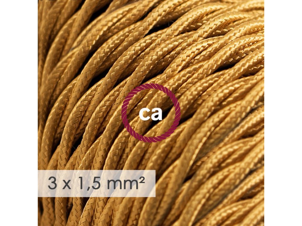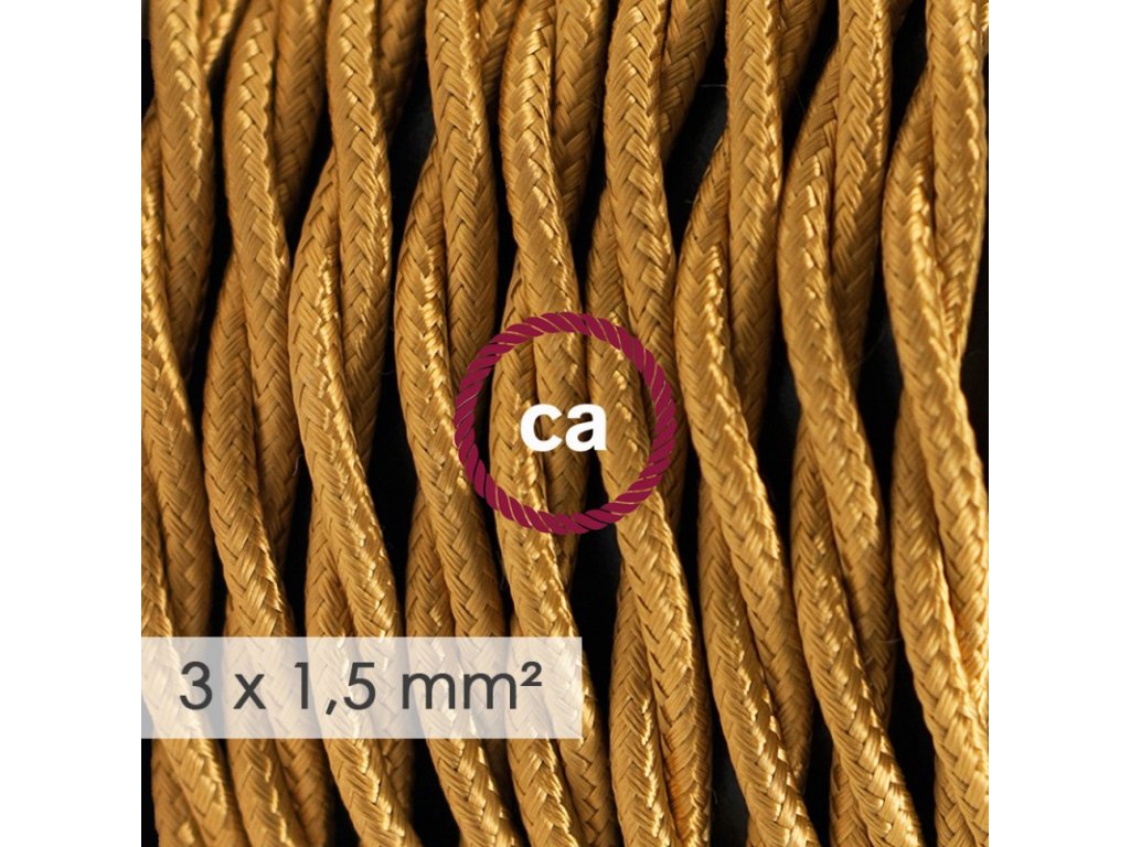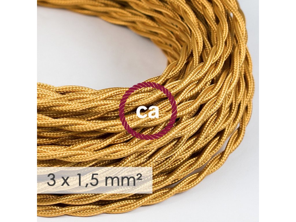 Potrebujete viac elektriny?Tento textilný elektrický kábel so širším priemerom 3x1,5 - umelý hodváb TM05 zlatý, je ideálny pre vytvorenie vlastnej predlžovačky, pre rozvody elektrickej siete alebo jednoducho všade kde chcete priviesť elektrinu vašim elektrickým zariadením. Taliansko s IMQ-Har certifikátom! Upozornenie!
