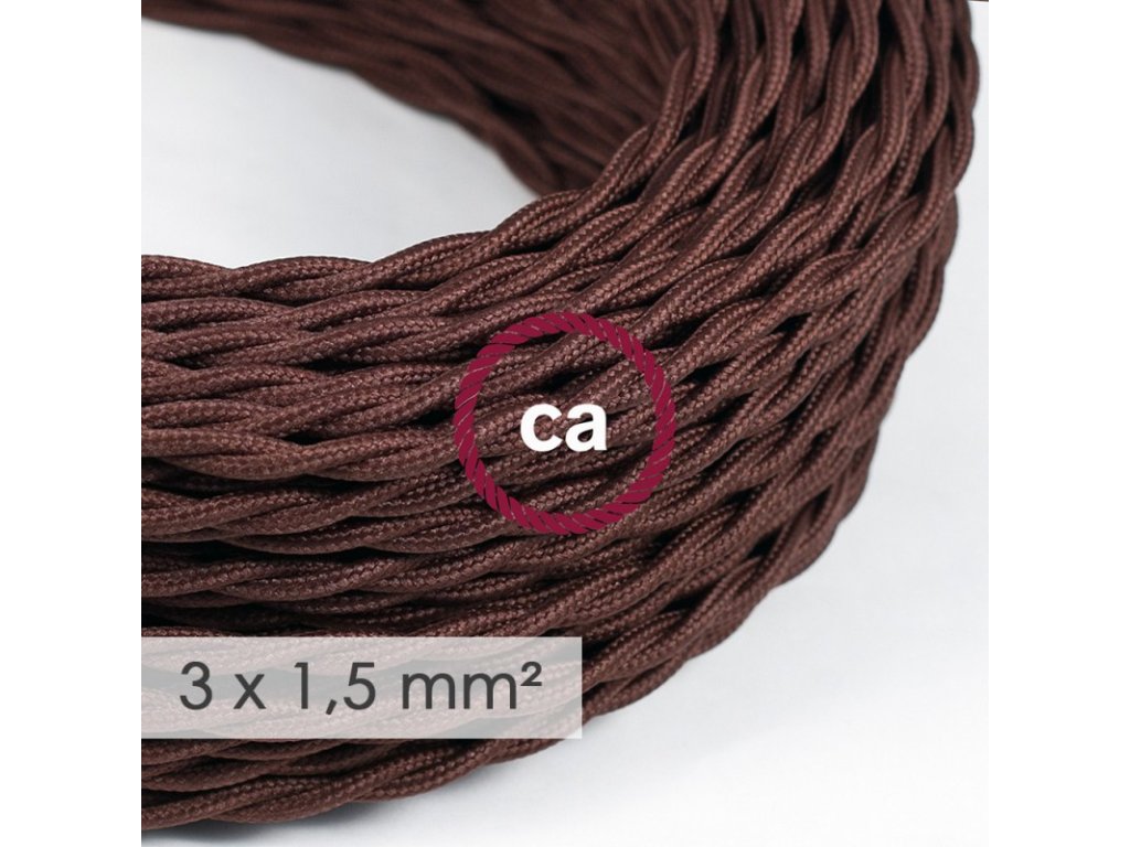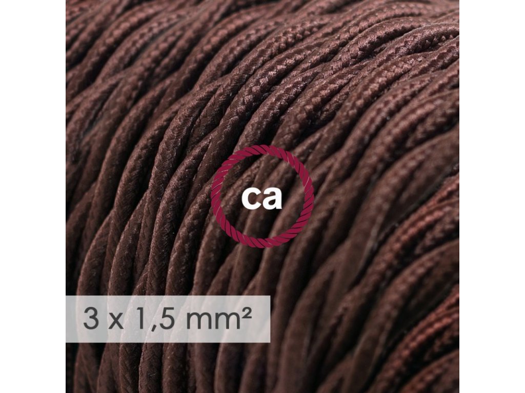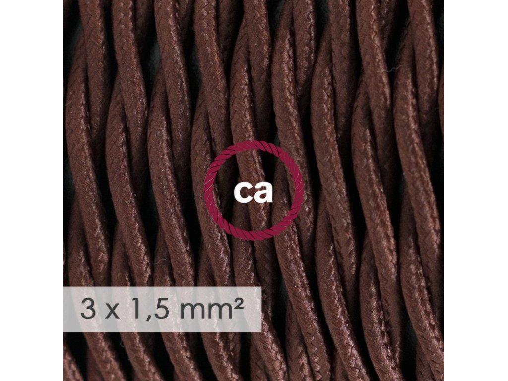 Potrebujete viac elektriny? Tento textilný elektrický kábel so širším priemerom 3x1,5 - umelý hodváb TM13 hnedý, je ideálny na vytvorenie vlastnej predlžovačky, na rozvody elektrickej siete alebo jednoducho všade kde chcete priviesť elektrinu vašim elektrickým zariadeniam. Elektrický kábel má dvojakú izoláciu z ohybného PVC. Všetky káble Creative-Cables sú 100% vyrábané v Taliansku s IMQ-Har certifikátom. Upozornenie! Naše elektrické káble so širším priemerom 3x1,50 mm² nie sú hrúbkou kompatibilné s našimi stropnými rozetami a objímkami.