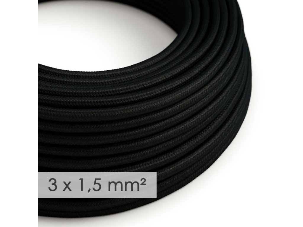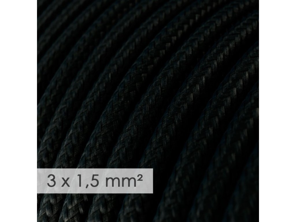 Potrebujete viac elektriny? Tento textilný elektrický kábel so širším priemerom 3x1,5 - umelý hodváb RM04 čierny, je ideálny pre vytvorenie vlastnej predlžovačky, pre rozvody elektrickej siete alebo jednoducho všade kde chcete priviesť elektrinu vašim elektrickým zariadeniam. Elektrický kábel má dvojakú izoláciu z ohybného PVC. Všetky káble Creative-Cables sú 100% vyrábané v Taliansku s IMQ-Har certifikátom. Upozornenie! Naše elektrické káble so širším priemerom 3x1,50 mm² nie sú hrúbkou kompatibilné s našimi stropnými rozetami a objímkami.