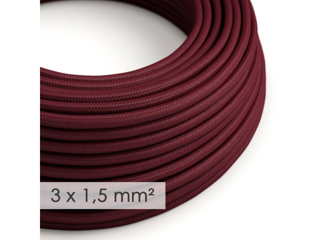 Potrebujete viac elektriny? Tento textilný elektrický kábel so širším priemerom 3x1,5 - umelý hodváb RM19 bordový, je ideálny na vytvorenie vlastnej predlžovačky, na rozvody elektrickej siete alebo jednoducho všade kde chcete priviesť elektrinu vašim elektrickým zariadeniam. Elektrický kábel má dvojakú izoláciu z ohybného PVC. Všetky káble Creative-Cables sú 100% vyrábané v Taliansku s IMQ-Har certifikátom. Upozornenie! Naše elektrické káble so širším priemerom 3x1,50 mm² nie sú hrúbkou kompatibilné s našimi stropnými rozetami a objímkami.