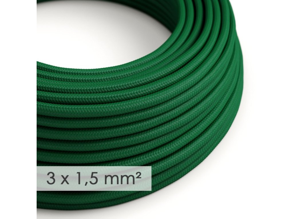 Potrebujete viac elektriny? Tento textilný elektrický kábel so širším priemerom 3x1,5 - umelý hodváb RM21 zelený, je ideálny na vytvorenie vlastnej predlžovačky, na rozvody elektrickej siete alebo jednoducho všade kde chcete priviesť elektrinu vašim elektrickým zariadeniam. Elektrický kábel má dvojakú izoláciu z ohybného PVC. Všetky káble Creative-Cables sú 100% vyrábané v Taliansku s IMQ-Har certifikátom. Upozornenie! Naše elektrické káble so širším priemerom 3x1,50 mm² nie sú hrúbkou kompatibilné s našimi stropnými rozetami a objímkami.