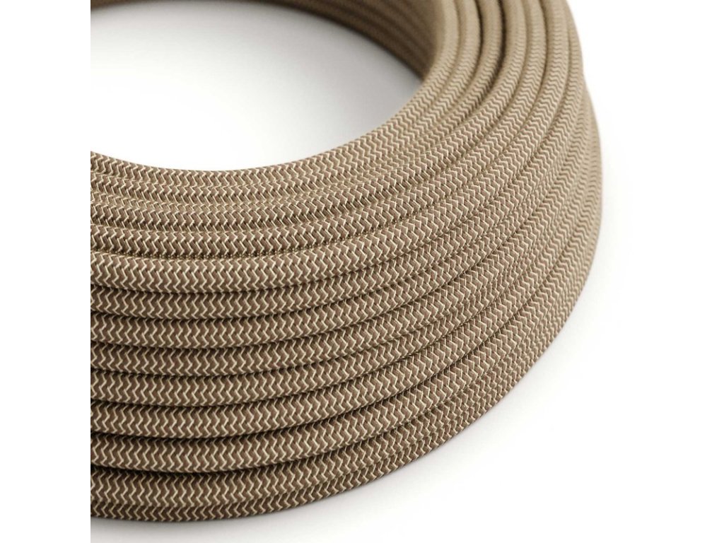 Textilný elektrický kábel opradený prírodným ľanom a bavlnou kôrovej farby RD73 vzor cik cak