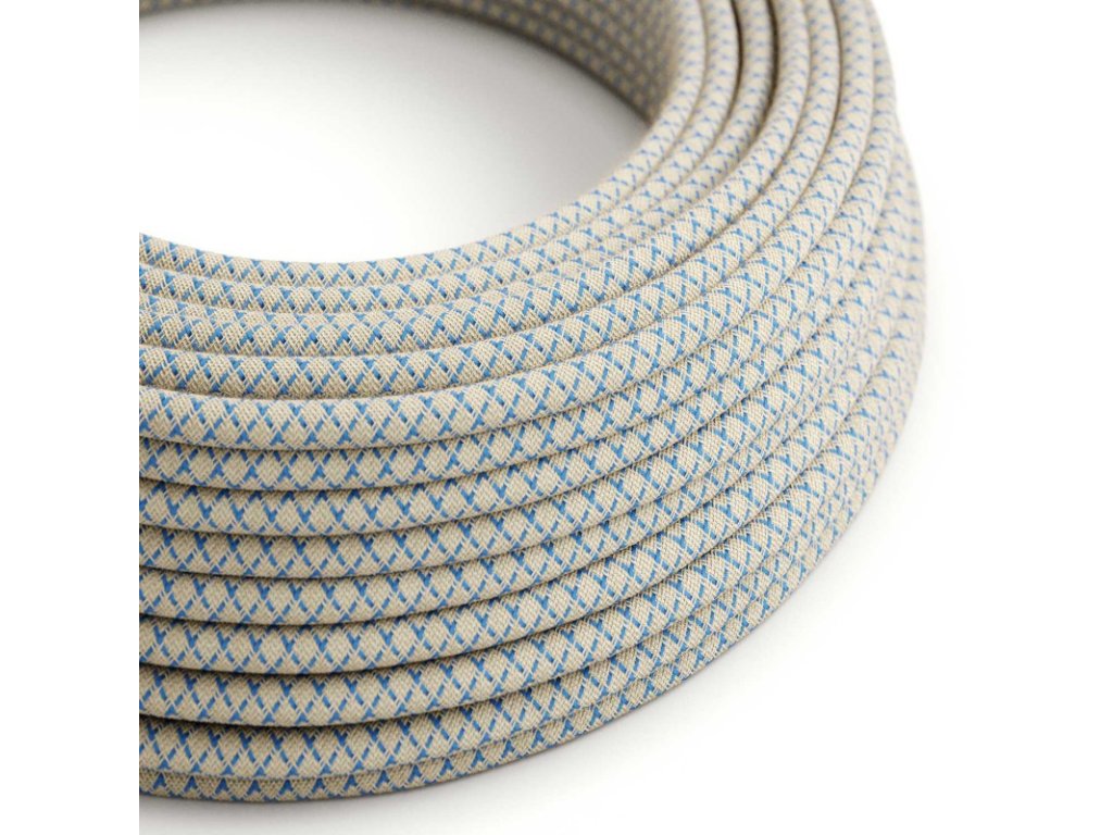 Textilný elektrický kábel opradený prírodným ľanom a bavlnou modrej farby RD65 vzor kosoštvorca
