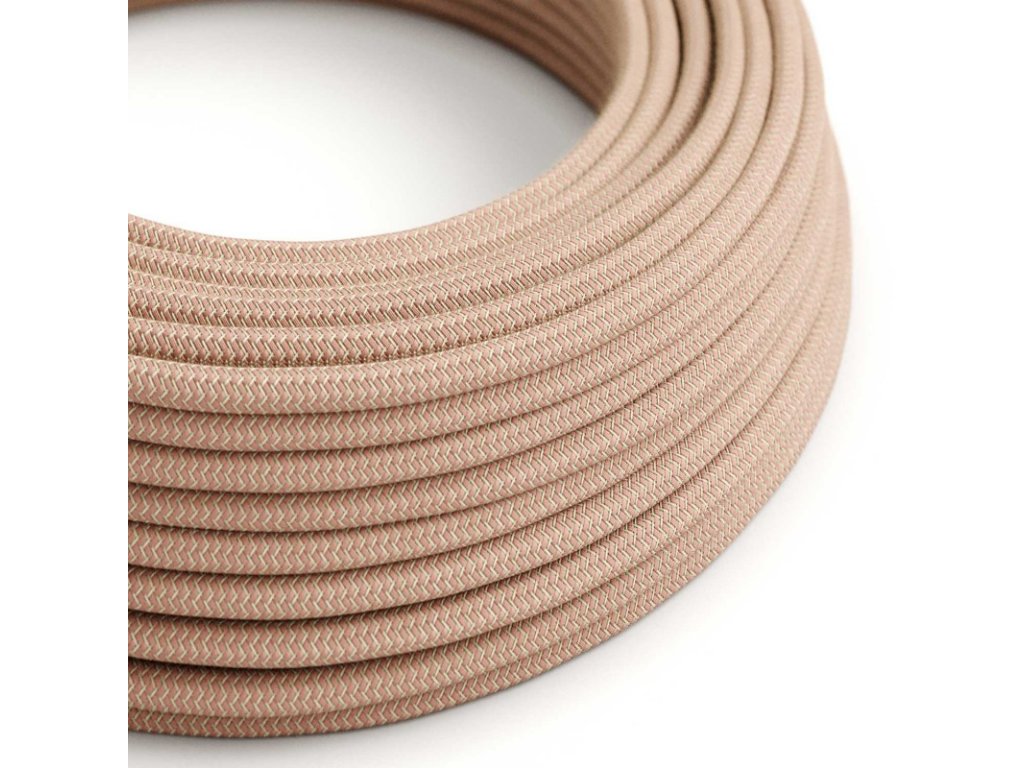Textilný elektrický kábel opradený prírodným ľanom a bavlnou staroružovej farby RD71 vzor cik cak