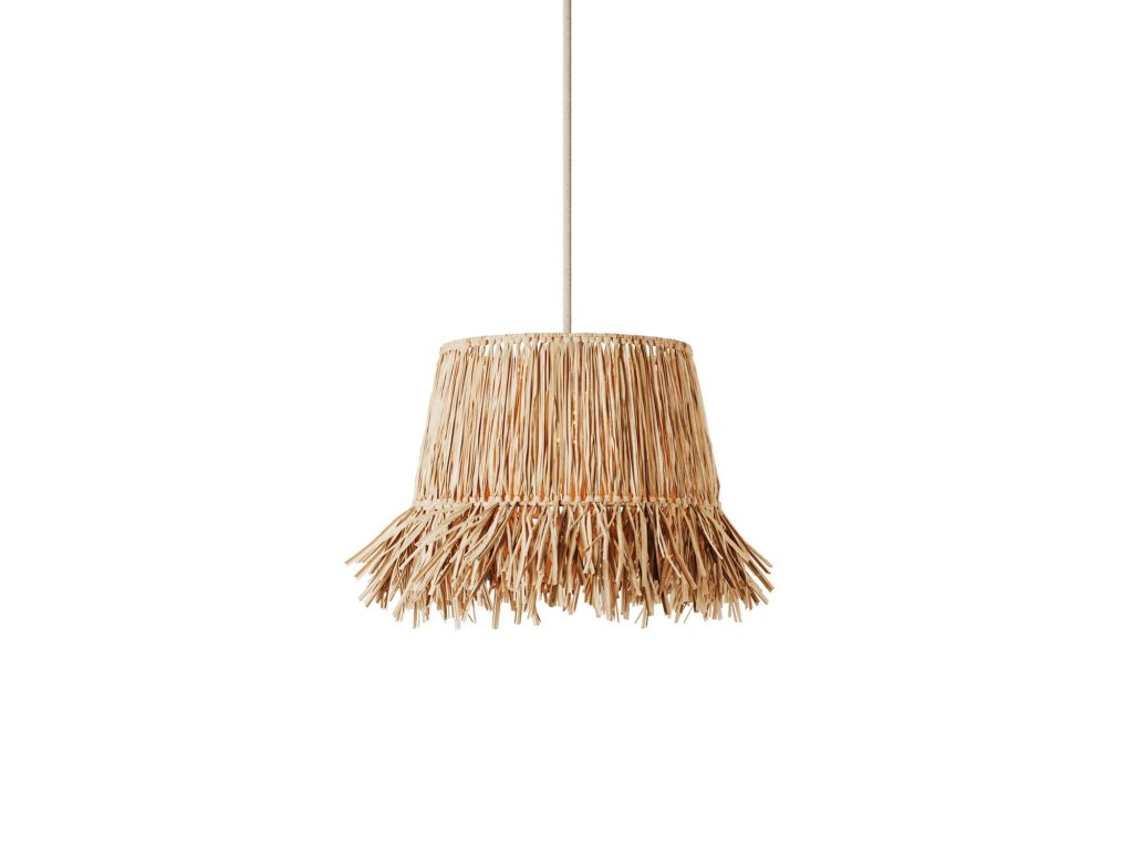 Tienidlo lampy Honolulu z rafie doplnenej strapcami má exotický vzhľad a ekologické srdce. Každé z nich je ručne vyrobené z najväčších listov palmy Raphia, ktoré sú 100% biologicky odbúrateľné a kompostovateľné.