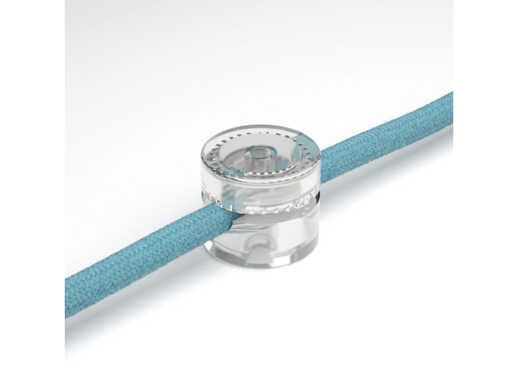 Univerzálny úchyt, ktorý je nevyhnutným príslušenstvom na pripevnenie textilných káblov k stenám alebo stropom.. Toto drobné príslušenstvo vám spolu s farebnými káblami pomôže vytvoriť kreatívne riešenie, ktoré má vtip. Vyberte farbu, ktorá najlepšie sadne vašim interiérom: pokiaľ uprednostňujete nenápadný vzhľad, voľte priehľadnú. Kompatibilná s káblami s maximálnym priemerom 7mm, táto káblová svorka je vhodná pre naše textilné káble s okrúhlym prierezom.