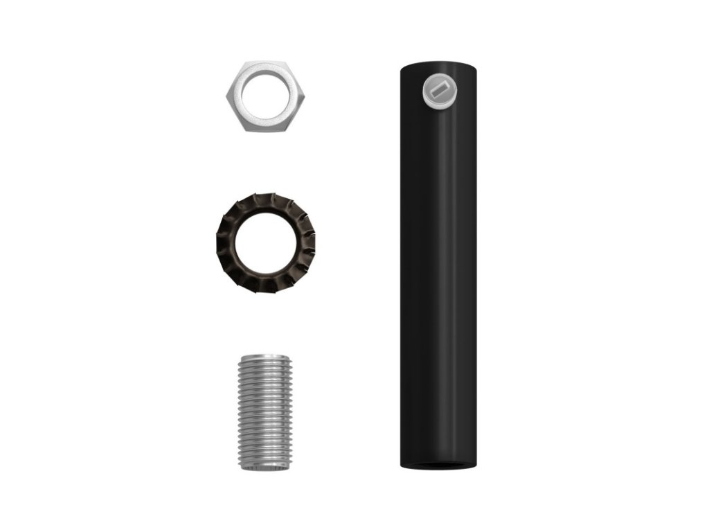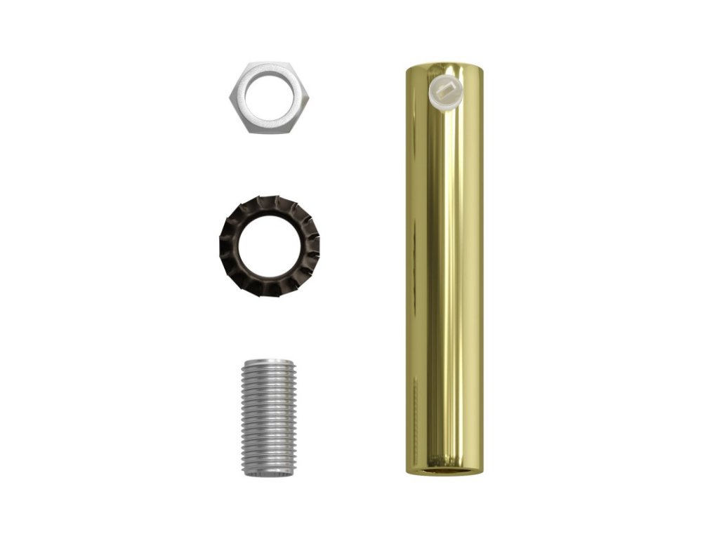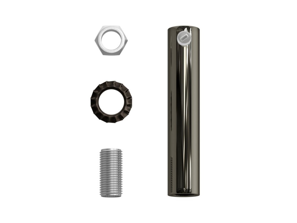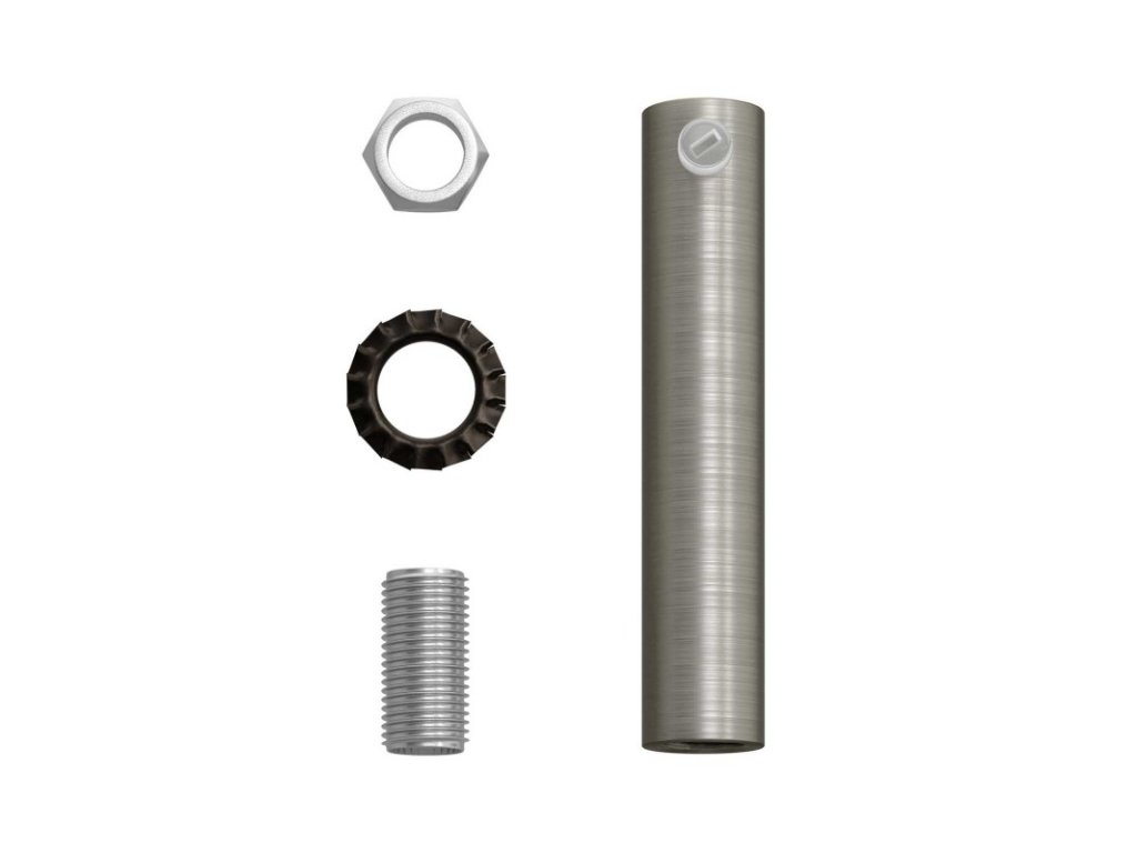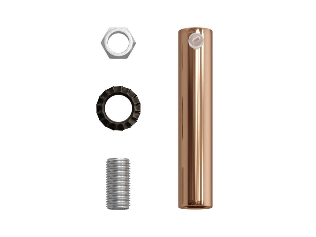 Pomocou valcovej kovovej káblovej priechodky, dlhej 7cm, si urobte svoj stropný baldachýn a objímky ešte elegantnejšie. Vďaka svojej farbe a veľkosti má táto káblová priechodka výrazný vizuálny efekt a môže byť ďalším dekoračným prvkom. So závitovou tyčkou, maticou a podložkou sa prispôsobí akémukoľvek stropnému baldachýnu aj objímke. 7 cm valcová kovová káblová priechodka je k dispozícii vo všetkých kovových povrchových úpravách z radu komponentov Creative-Cables: vyberte si ten, ktorý najlepšie zodpovedá lampe, ktorú chcete zostaviť.