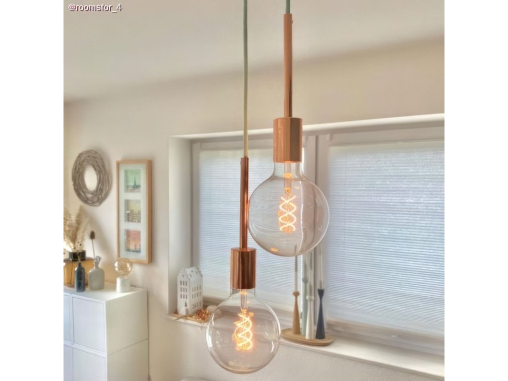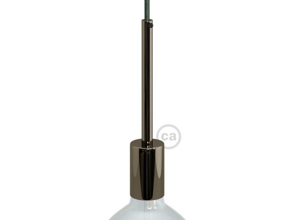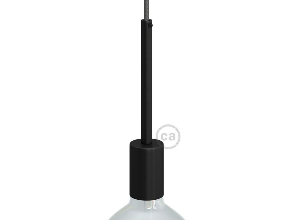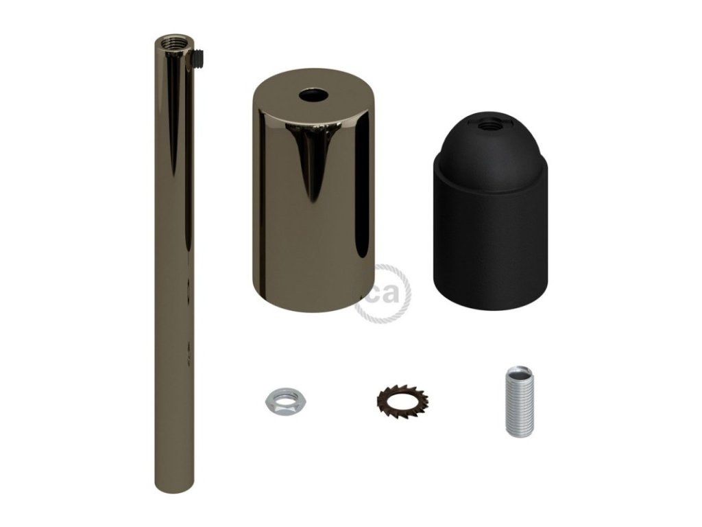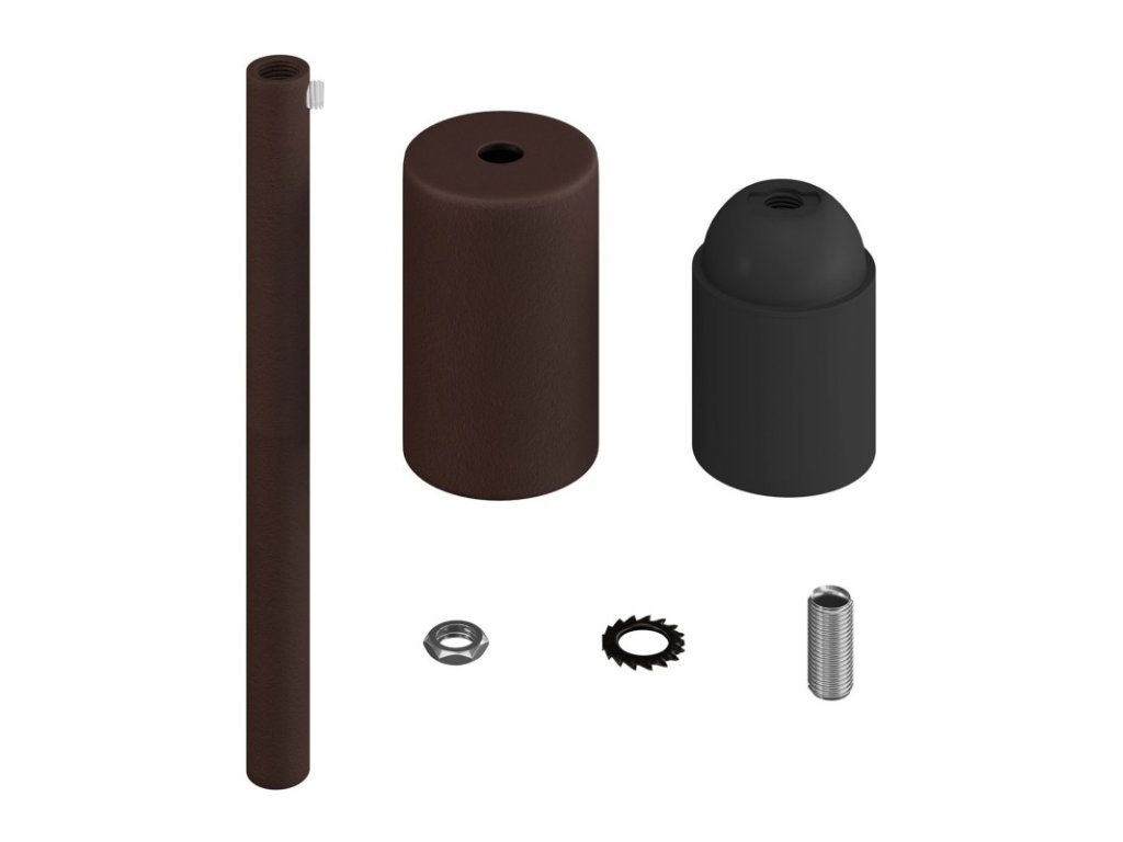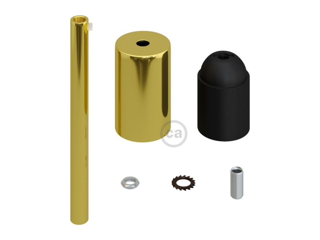 Valcová objímka v sade je zložená z malej krytky, objímky E27 a 15 cm kovovej valcovej káblovej priechodky a je ideálna na vytvorenie závesnej lampy. Stačí zakúpiť (nie je súčasťou) Váš obľúbený textilný kábel a stropný baldachýn.