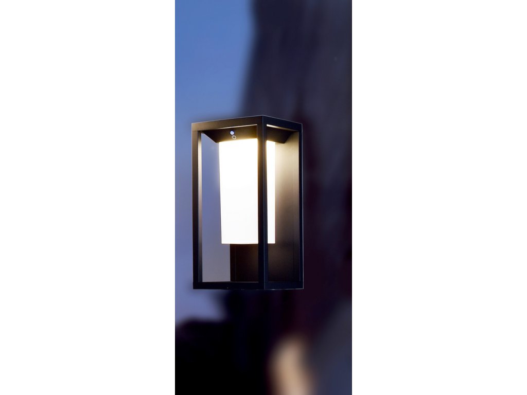 Designový venkovní LED nástěnné svítidlo Samas Solar. Svítidlo je obohaceno o solární panel, které má mimořádně dlouhou dobu svícení díky úspornému režimu, kdy za absence slunce svítí pouze 15% světelného výkonu. Jakmile její integrovaný senzor zaznamená pohyb, rozsvítí se plným výkonem. Svítidlo lze také vypnout pomocí tlačítka.