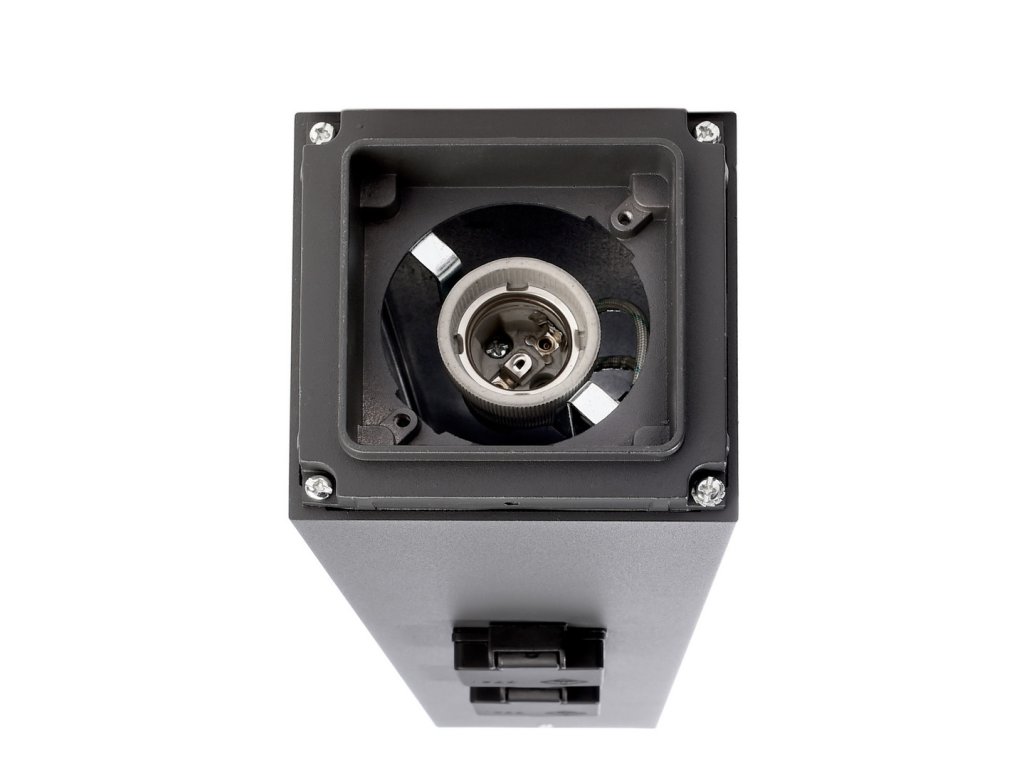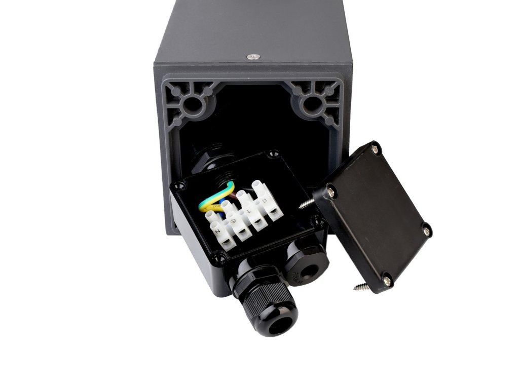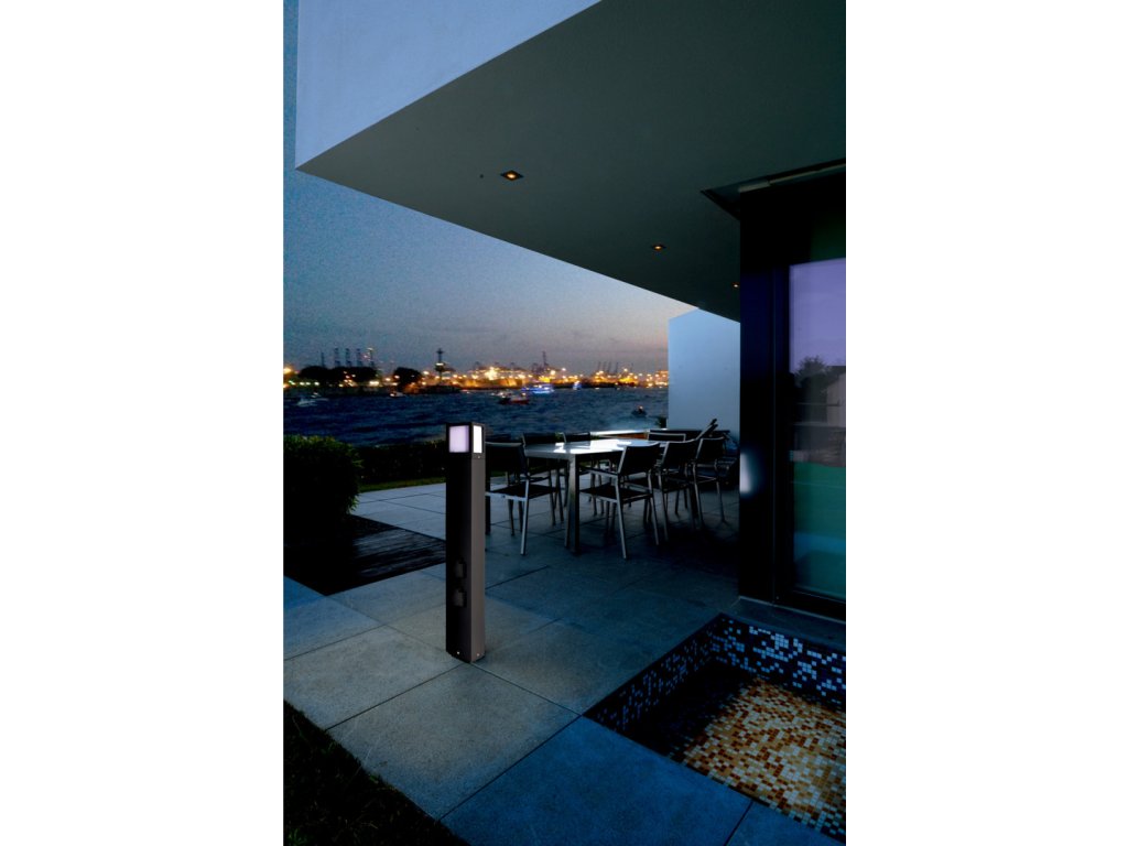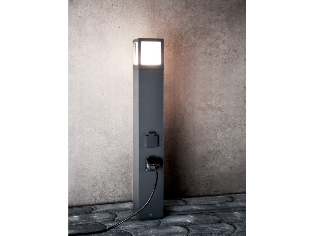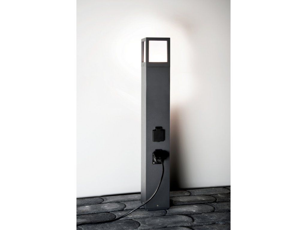 Venkovní sloupek Facadov hranatém tvaru se zásuvkami v černé barvě k dispozici s opálový difuzorem.