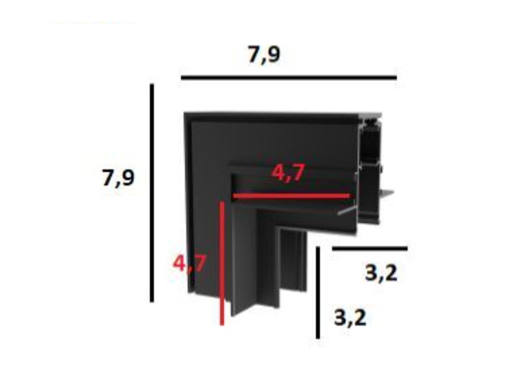 Vnútorná 90° rohová spojka R2 pre vstavaný 48V lištový systém