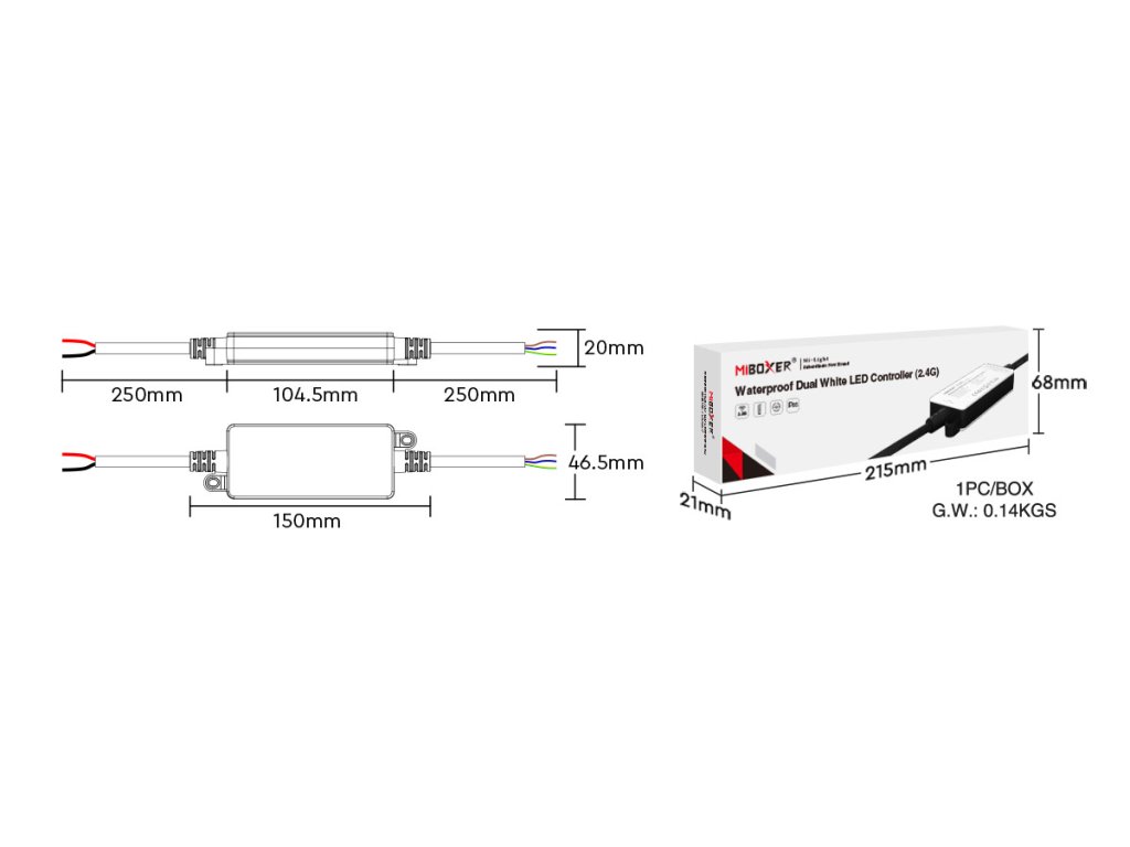 Mi-Light ML035S-P je vodeodolná riadiaca jednotka s frekvenciou 2,4 GHz, ktorá je vhodná pre ovládanie CCT LED pásikov.