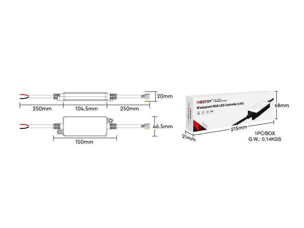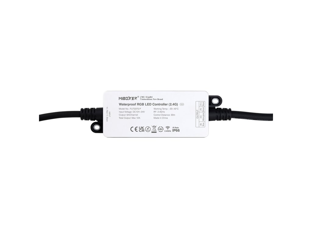 Mi-Light FUT037S-P je vodeodolná riadiaca jednotka s frekvenciou 2,4 GHz, ktorá je vhodná pre ovládanie RGB LED pásikov.