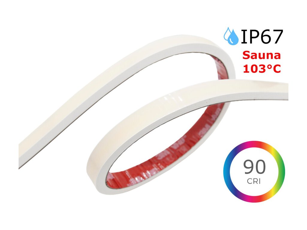 Vodeodolný LED pásik do sauny 10W/m, 24V, IP67, 103 ° C, 480LED/m, CRI>90, 10mm