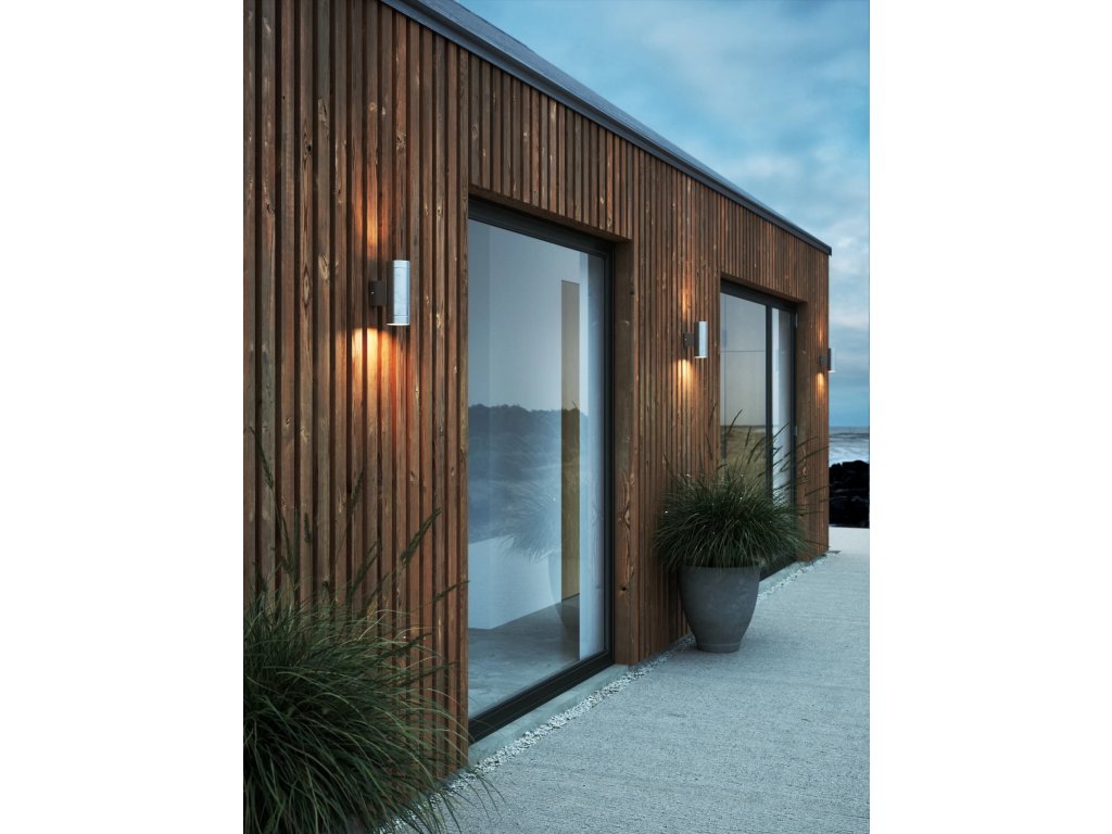 Vonkajší nástenný valec TIN MAXI v kombinácii kovu a skla s dvoma žiarovkami - svieti hore a dole, je k dispozícii v štyroch prevedeniach - čierna, hliník alebo nerez.