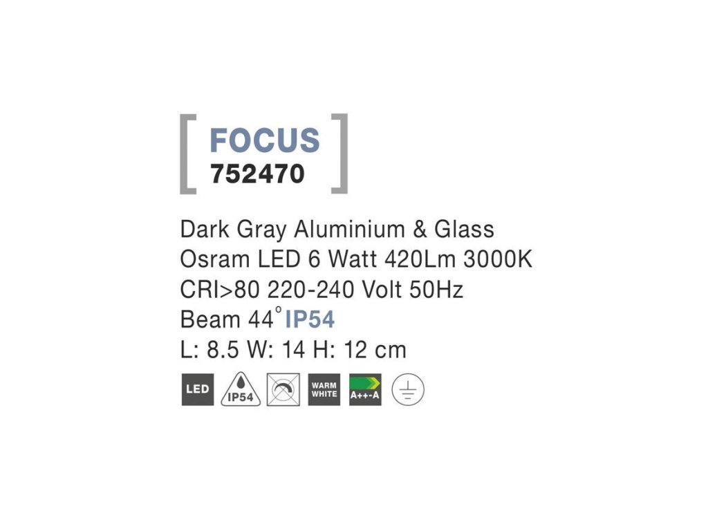 Vonkajší reflektor FOCUS tmavo šedý hliník a sklo Osram LED 6W 3000K 44st. IP54