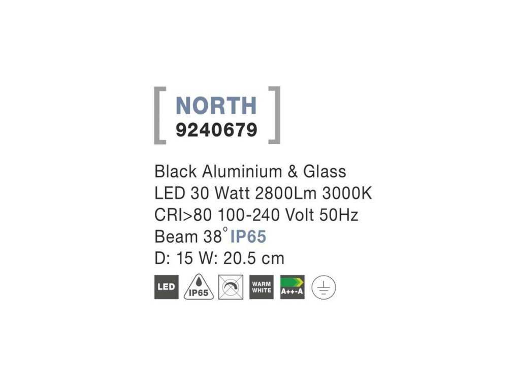 Vonkajší reflektor NORTH čierny hliník a sklo LED 30W 3000K 38st.