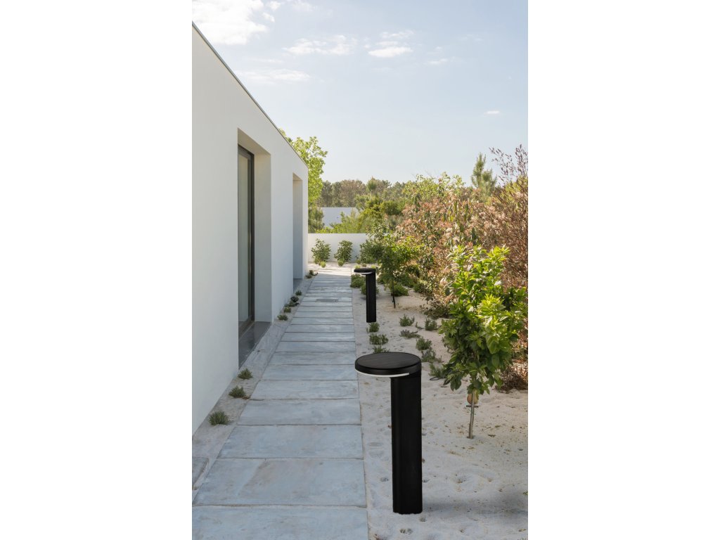 Vonkajšie stĺpikové solárne LED svietidlo GLOSS v tvare disku s vysokým stupňom krytia IP65.