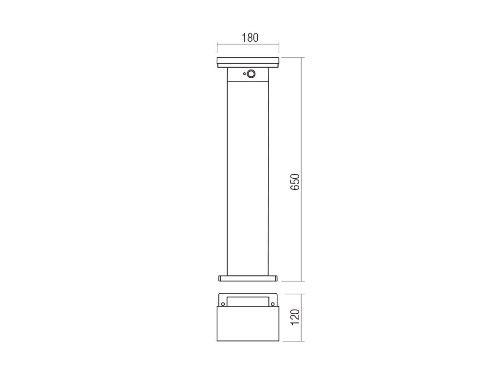 Vonkajší stĺpik TAIYO vybavené LED diódami SMD, vypínačom, súmrakovým a pohybovým čidlom, s 3 prevádzkovými programami. Max. doba nabíjania na slnečnom svetle 8 hodín, max. prevádzková doba 14 hodín. Telo z tlakovo liateho hliníka, elektrostaticky lakované v tmavo šedej farbe, saténový polykarbonátový difúzor.