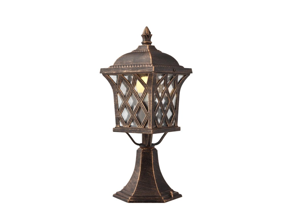 Vonkajšie svietidlo, telo z liateho hliníka, čierny povrch so zlatou patinou, sklenený ornamentálny difúzor, bublinkový model.