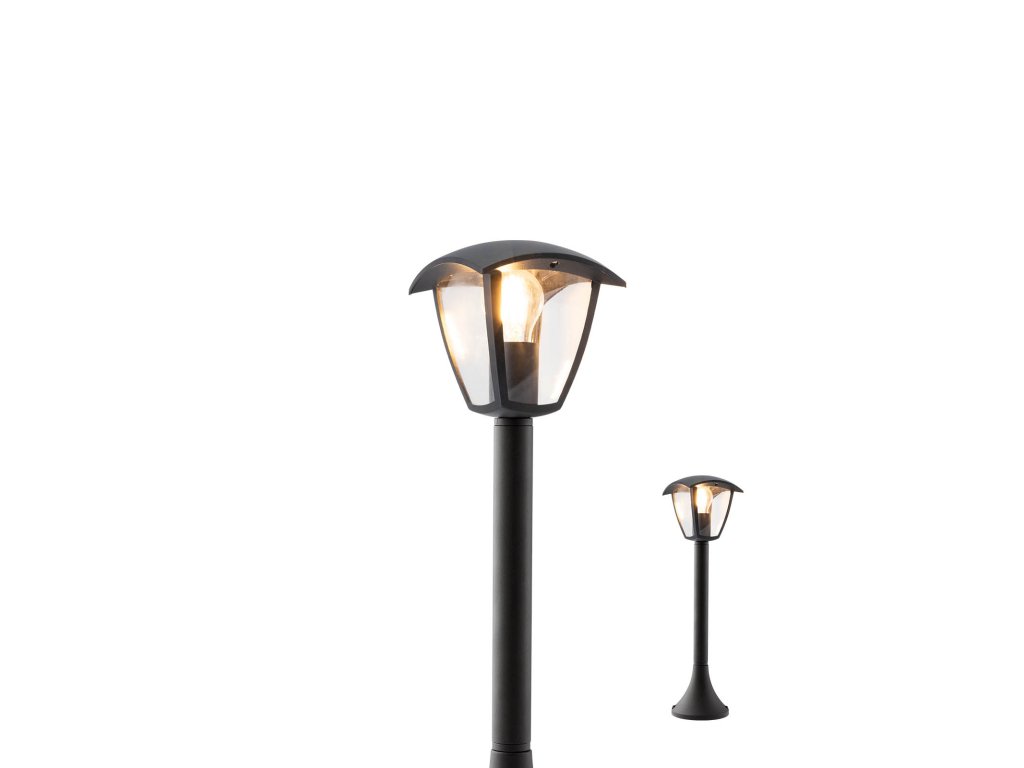 Vonkajšie svietidlo, telo z liateho hliníka, elektrostaticky nanesený matný čierny lak, priesvitný polykarbonátový difúzor.