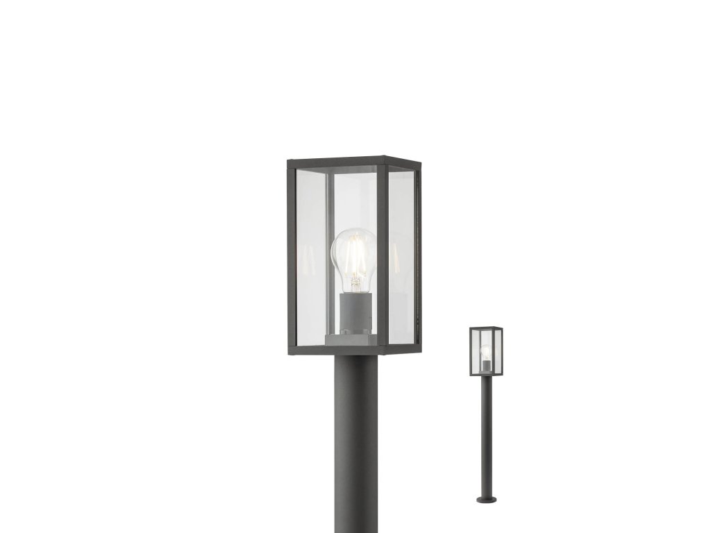 Vonkajší stĺpik, teleso z tlakovo liateho hliníka, elektrostaticky lakované v matne čiernej, priehľadné sklenené difúzory. Žiarovka E27 nie je súčasťou balenia.