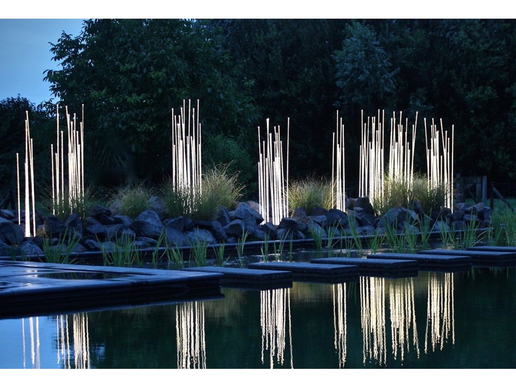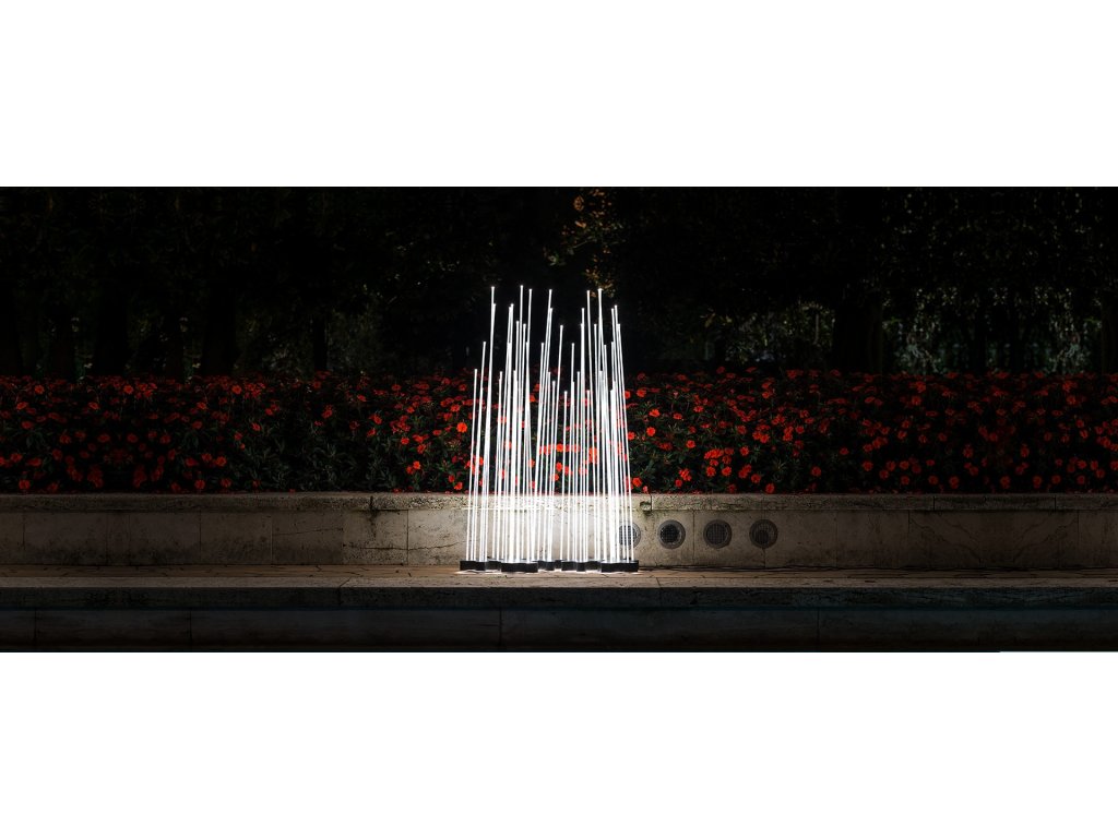 Sedem pružných stebiel vystupuje z podstavca ako bambus či rákosie a s prirodzenou ľahkosťou vedie svetlo LED diód nahor.