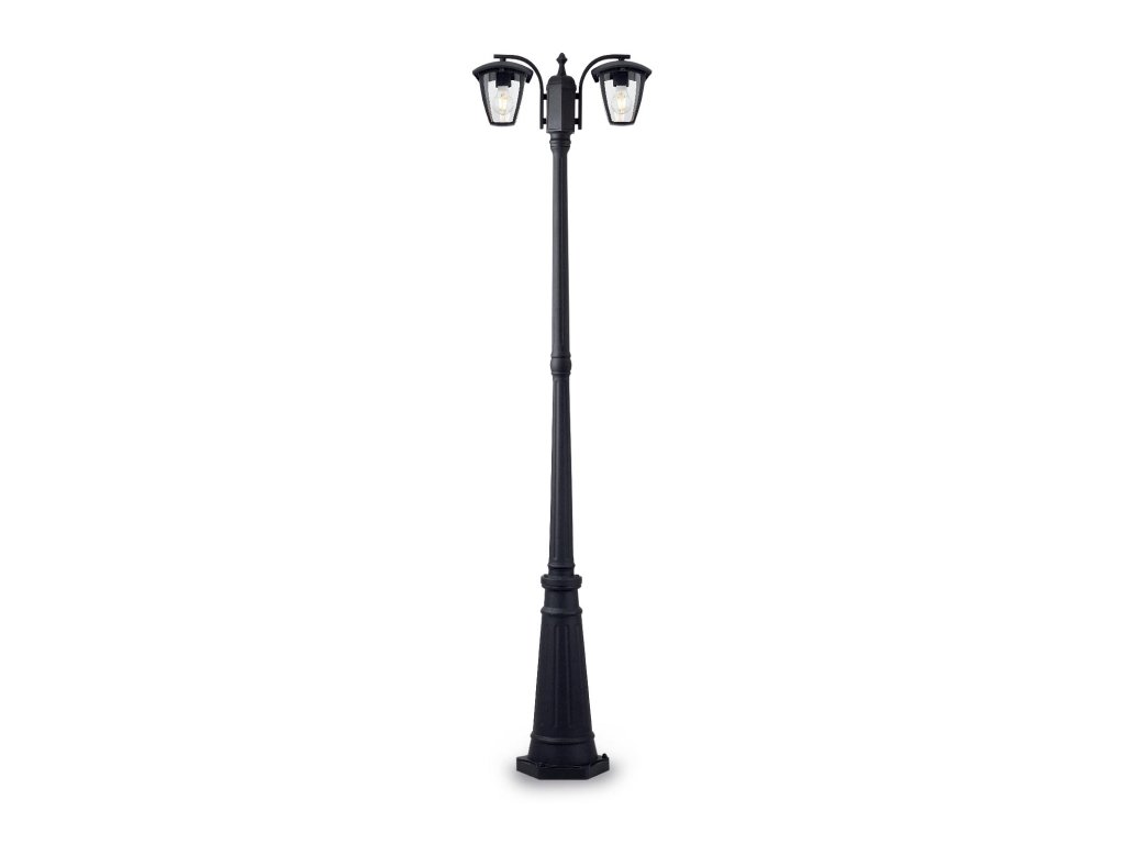 Vonkajšie svietidlo, telo z liateho hliníka, elektrostaticky nanesený matný čierny lak, priesvitný polykarbonátový difúzor.