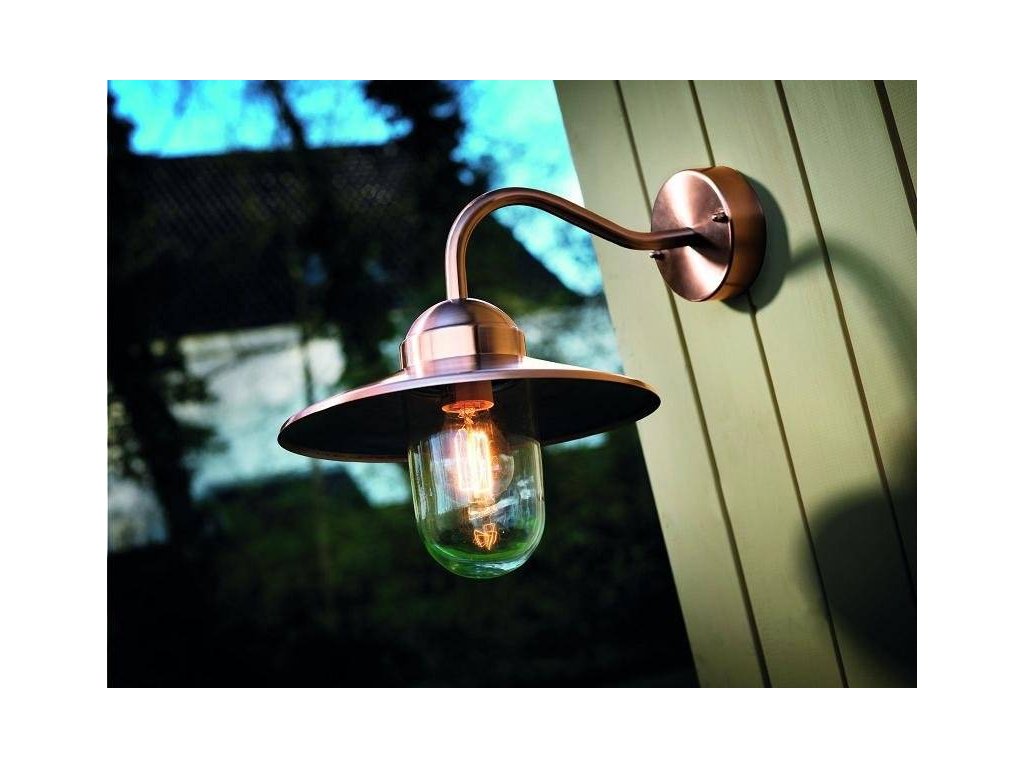 Elegantná nástenná lampa na vonkajšie použitie s tvarovaným ramenom na okrúhle prisadené základni a oblým robustným sklom s guľatou strieškou. Svietidlo je vyrobené z kovu v troch rôznych prevedeniach pre dokonalé zladenie s okolím, pekný efekt dosiahnete vďaka použitiu retro žiarovky Filament.Dodatočné parametre