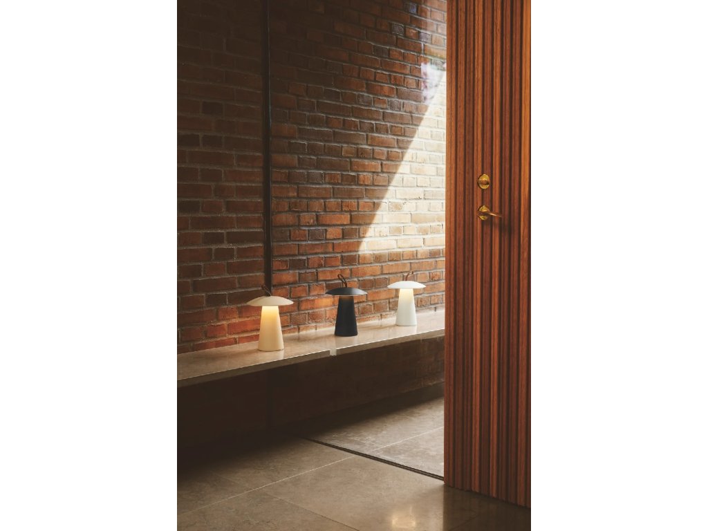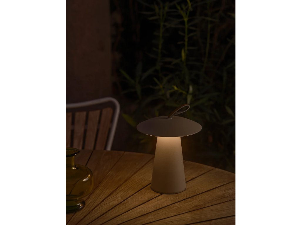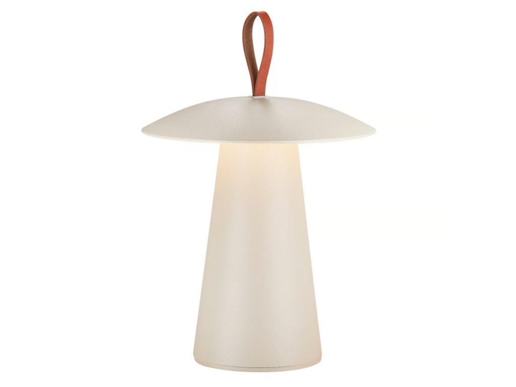 Malá prenosná lampička Ara To Go od Nordluxu ideálne osvieti Vašu terasu či balkón. Tri farebné varianty - biela, čierna aj piesková - sú doplnené o kožené pútko. Plynulé stmievanie pre nastavenie správneho svietenia.Dodatočné parametre