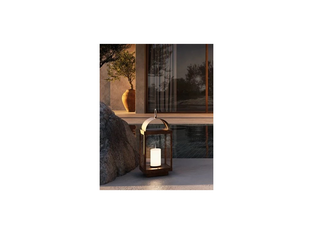 Kolekcia vonkajších svietidiel Lanterne inšpirovaná Orientom vytvára rovnakú atmosféru ako svetlo sviečok. Je určená pre milovníkov mäkkého jantárového svetla, ktoré sa stáva absolútnym protagonistom, a je k dispozícii v rôznych modeloch so železným alebo talianskym mosadzným upevnením a priehľadným sklom.
