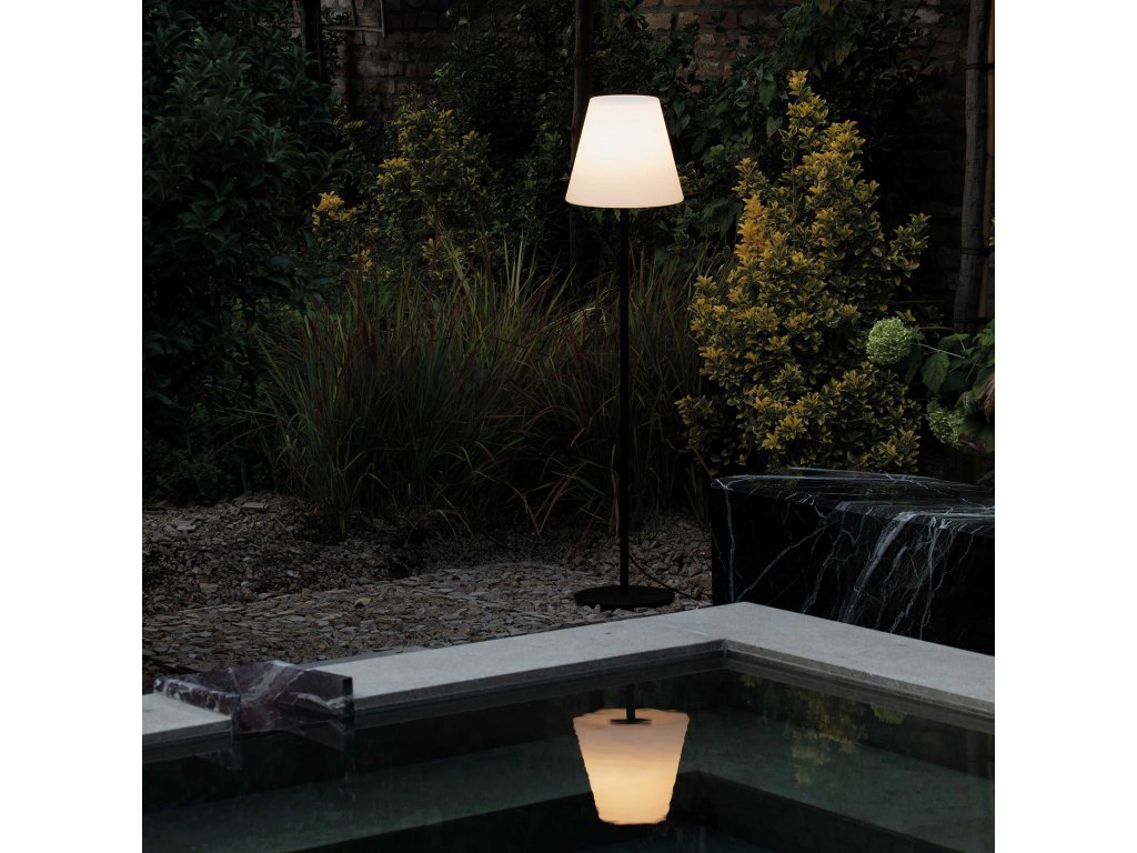 Vonkajšia stojacia lampa ARCADIA vyrobená z kovu. Telo svietidla je čierno lakované a difúzor z opálovo bieleho PMMA. Kábel je pokrytý neoprénom.