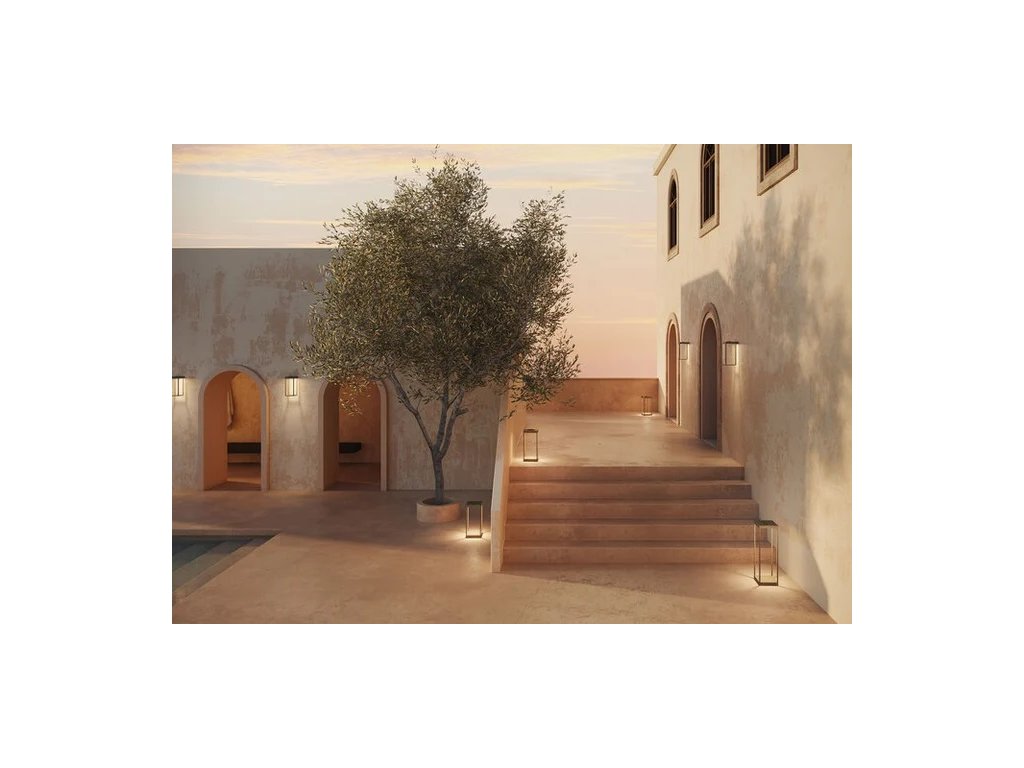 Mosadzné lucerny z tejto kolekcie sa vyznačujú jemnými a elegantnými líniami ako svetelné skrine, ktoré osvetľujú svoje okolie, zachovávajú jeho intimitu a vytvárajú sofistikovanú atmosféru. Vďaka starožitnej mosadznej štruktúre sú ideálne pre prírodnejšie prostredie. Lanterne Slim je k dispozícii vo verzii stojacej lampy, v troch rôznych veľkostiach, alebo ako nástenná lampa.