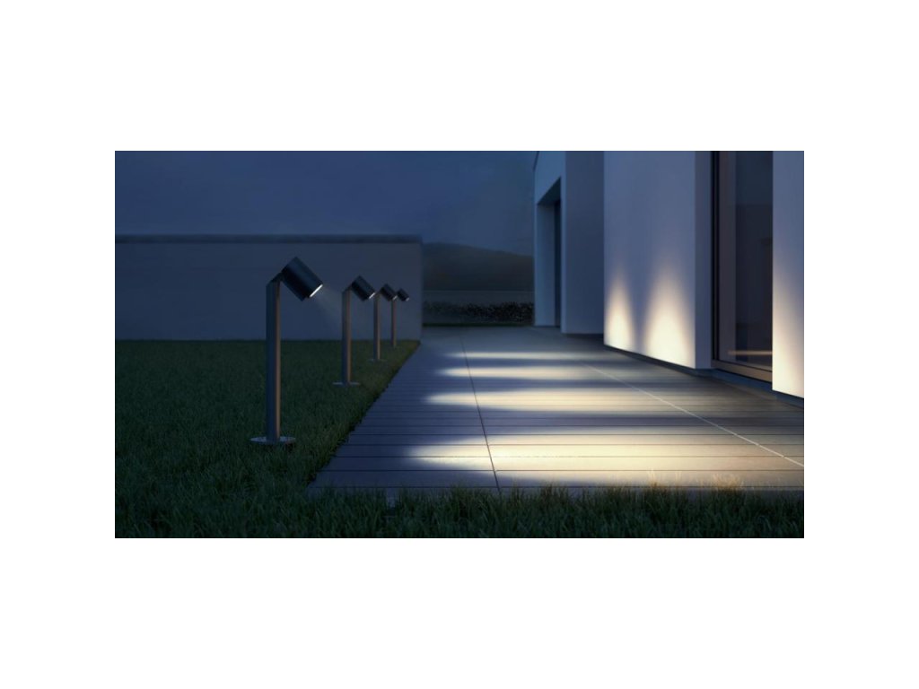 Elegantné vonkajšie svietidlo Spot Way je ponúkané v 3 variantoch. Jedná sa o antracitový, 57 cm vysoký pozemný reflektor "Spot Way" s otočnou hlavou reflektora, zaujme aj skvelými technickými detailmi. Reflektor je vyrobený z vysoko kvalitného hliníka, hlavu reflektora je možné otáčať o 180 ° horizontálne a 90 ° vertikálne. Svieti teplým bielym svetlom s teplotou 3000 K. Osvetľuje príjazdové cesty, prístupové body a ďalšie plochy.