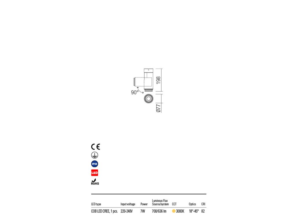 Vonkajší miniprojektor/reflektor EAGLE má konštrukciu z hliníkového odliatku v tmavosivej farbe a opálový polykarbonátový difúzor, pod ktorým je zabudovaný LED zdroj s farbou svetla 3000K. Exteriérový miniprojektor/reflektor EAGLE má ochranné krytie IP54, napájanie 220-240V, CRI82 a nastaviteľnú hlavicu s rozptylom svetla (od 18 ° do 45 °).
