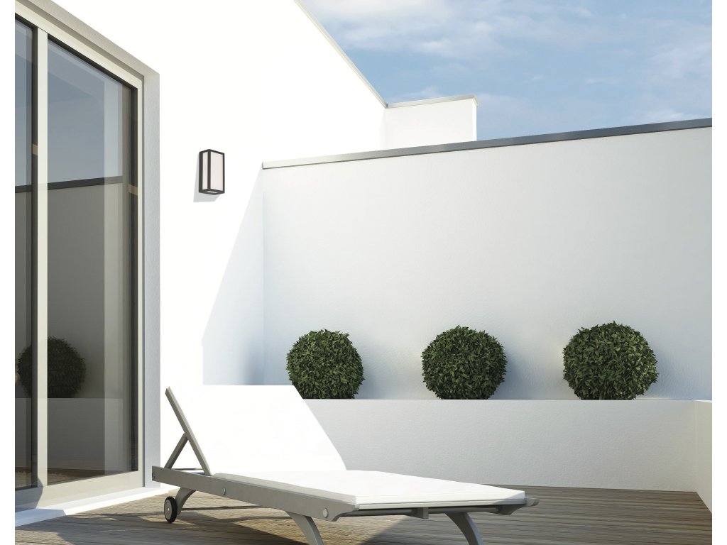 Vonkajšie LED nástenné svietidlo Liam hranatého tvaru, vyrobené z hliníka antracitovej farby.