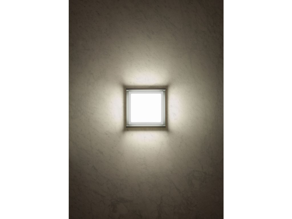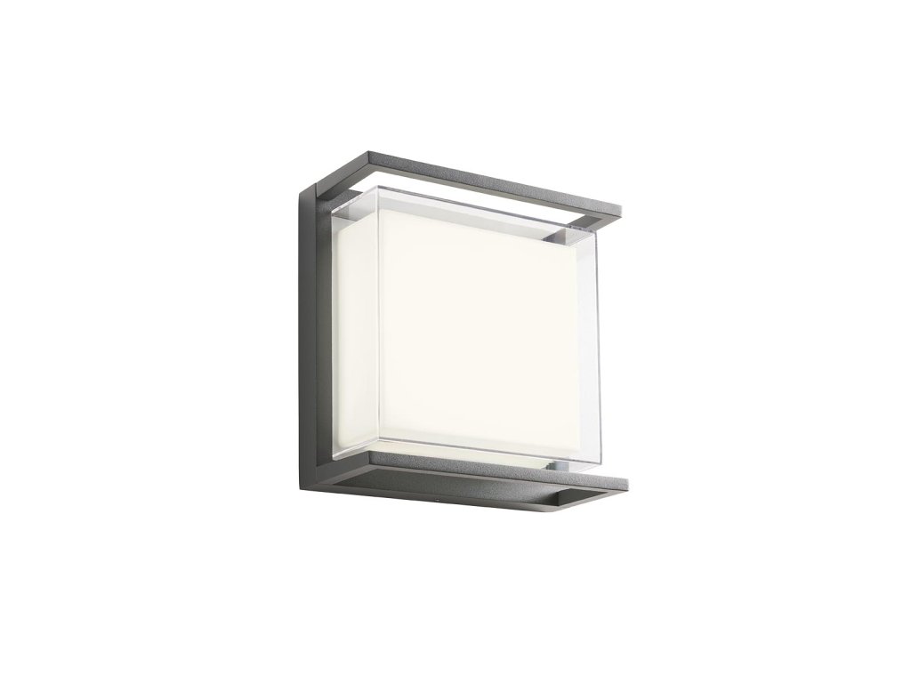Vonkajšie nástenné svietidlo vybavené SMD LED diódami, hliníkový odliatok, elektrostaticky lakovaný v tmavo šedej farbe, opálový a priehľadný polykarbonátový difúzor.