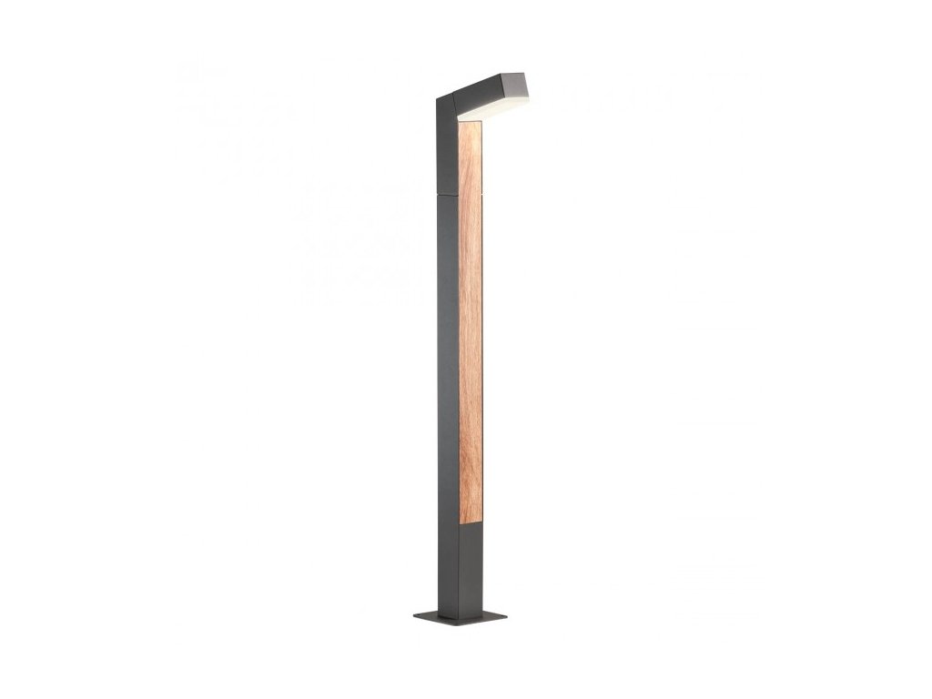 Vonkajší stĺpik vybavený LED diódami SMD. Telo z tlakovo liateho hliníka elektrostaticky lakované tmavo šedou farbou s dekoratívnou potlačou imitujúcou drevo, opálový polykarbonátový difúzor.