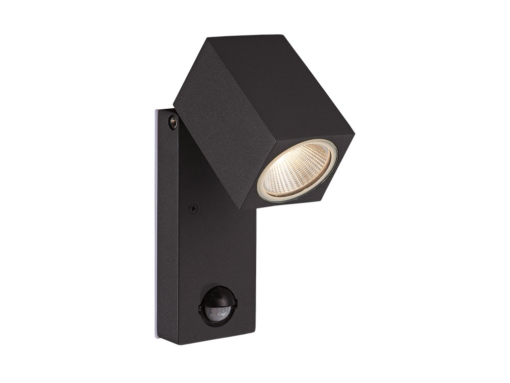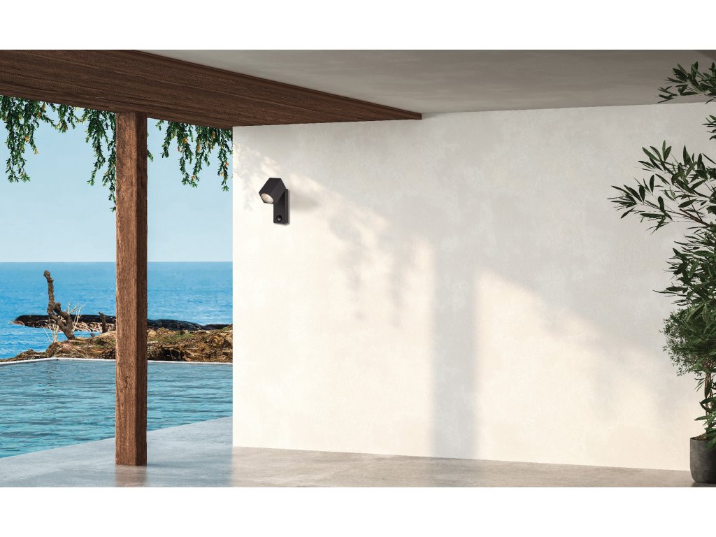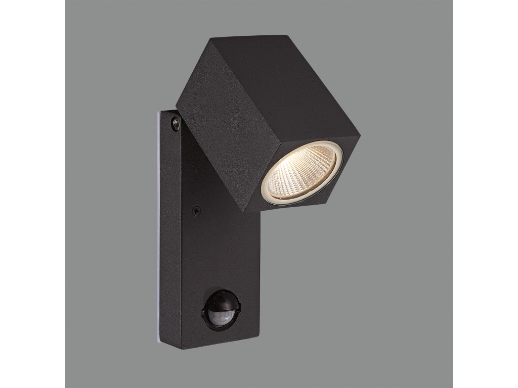 Moderné vonkajšie nástenné LED svietidlo Cala s integrovaným pohybovým senzorom v hranatom tvare, je malé ale účinné svetlo, ktorého hlava je možné otáčať o 90 ° v horizontálnom smere. Do držiaka nástenného svietidla je umiestnený pohybový senzor, ktorý detekuje pohyb na vzdialenosť až 8 metrov a automaticky rozsvieti svetlo.